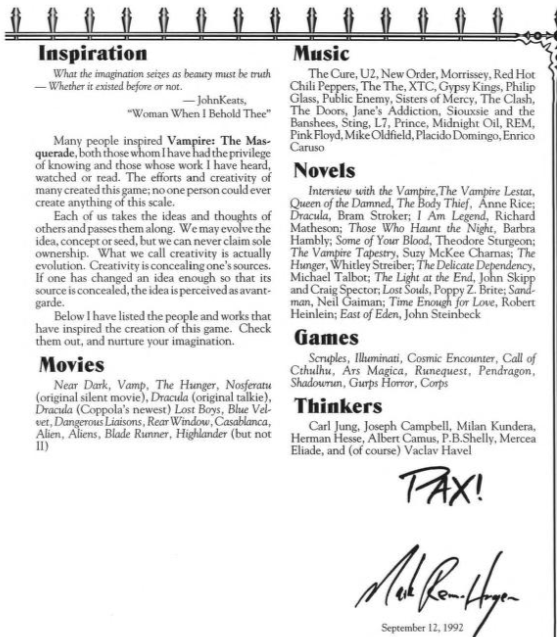 The credits and “inspired by” portion is remarkably detailed and helps point people towards other games if they really find some element engaging.