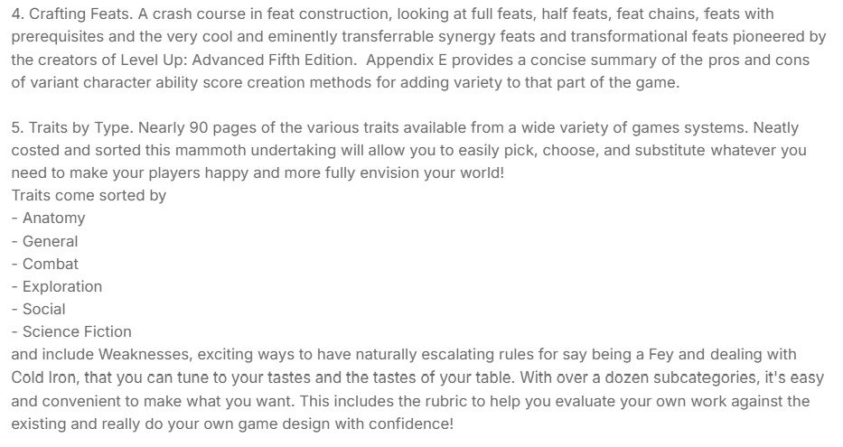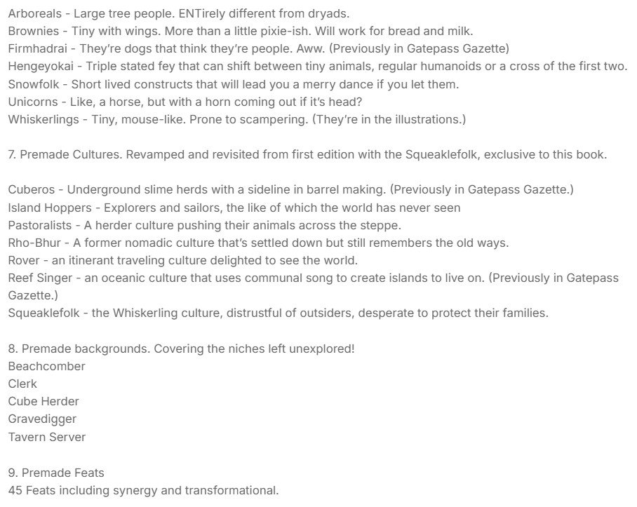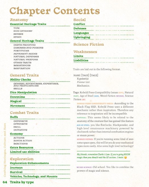 The art is gorgeous, the layout delightful and I've got an incredible 85 or so pages of fully costed and organised traits.