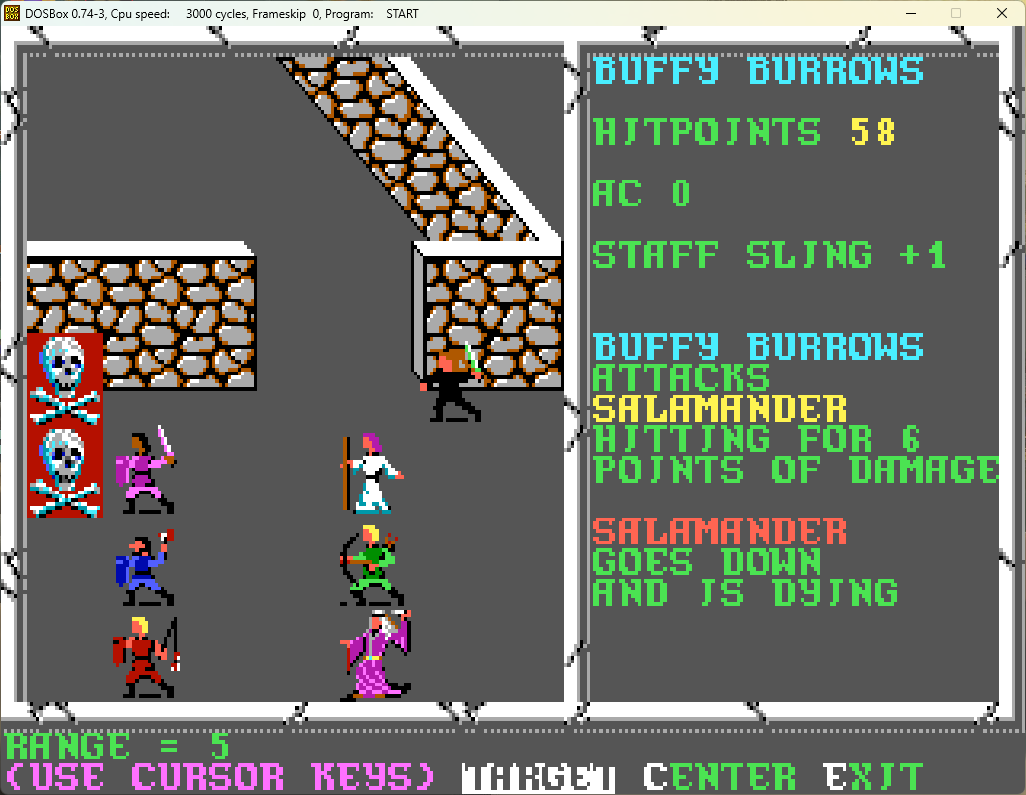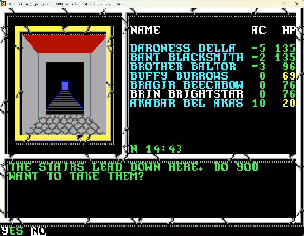 Of real interest here is that she's finally reached the level where she can cast cleric spells. Nothing exciting, but she can memorize some spells that Brother Baltor has been memorizing, allowing the latter to expand a bit when it comes to memorizing his spells.