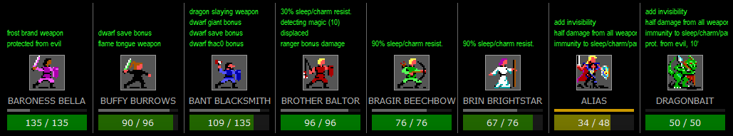 (Also, glad I re-read this after posting, as I completely forgot to re-order the party now that Alias and Dragonbait are gone. Went back and did a quick party order adjustment. Much better than forgetting about it, and then starting up next time and getting into a battle with Buffy in the front when she wouldn't need to be!)