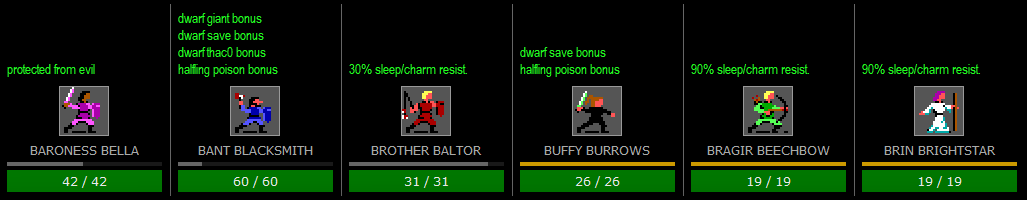 broadsword +1) and shield, Brother Baltor gets the mace, and Bant gets the chainmail, which at least will give him a better movement rate. Bant also gets Brother Baltor's old