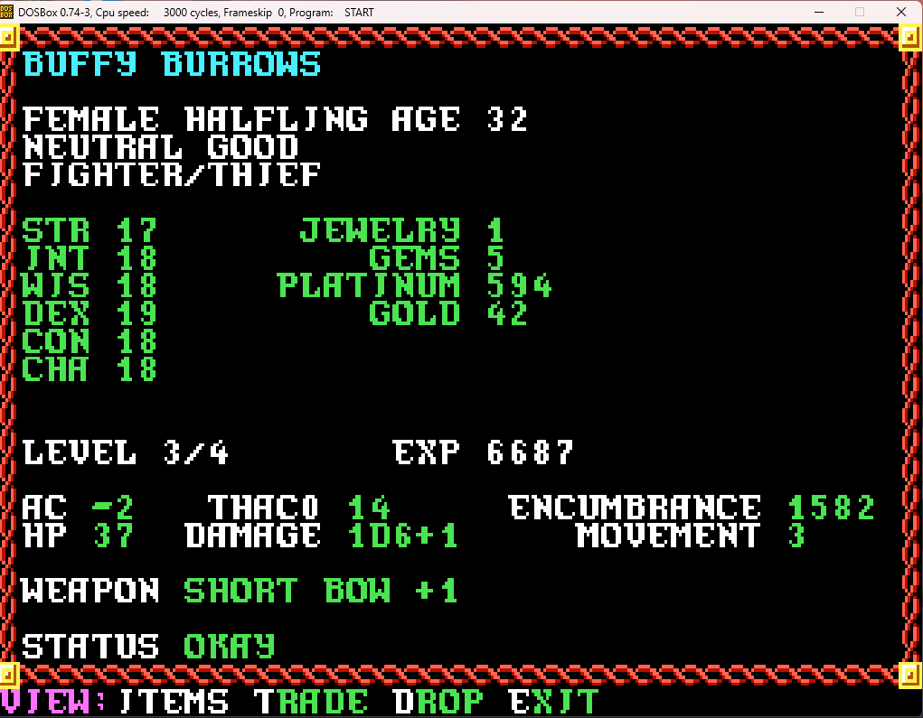 (As a side note, Dirten is an NPC mentioned in the RoA module, in a list of other gnome NPCs, all of which, hilariously, have earth-based names: Dirten, Soilish, Eartha, Dustin, and Groundla. The module for some unknown reason gives such bizarrely patterned names to NPCs of all races: for example, half-elves are all named after gemstones and half-orcs are all named after weapons - which will come up here in a bit in the game. Also, gnomes technically can't be clerics as per 1e rules, but as an NPC, Dirten is allowed to be an exception).