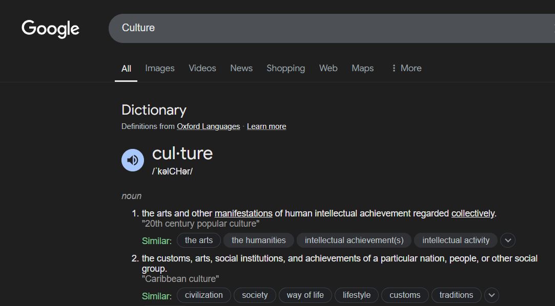 In my contexts, definition 2 of "culture" is the meaningful one. "Customs, arts, social institutions, ... of a particular ... social group."We have done this before.