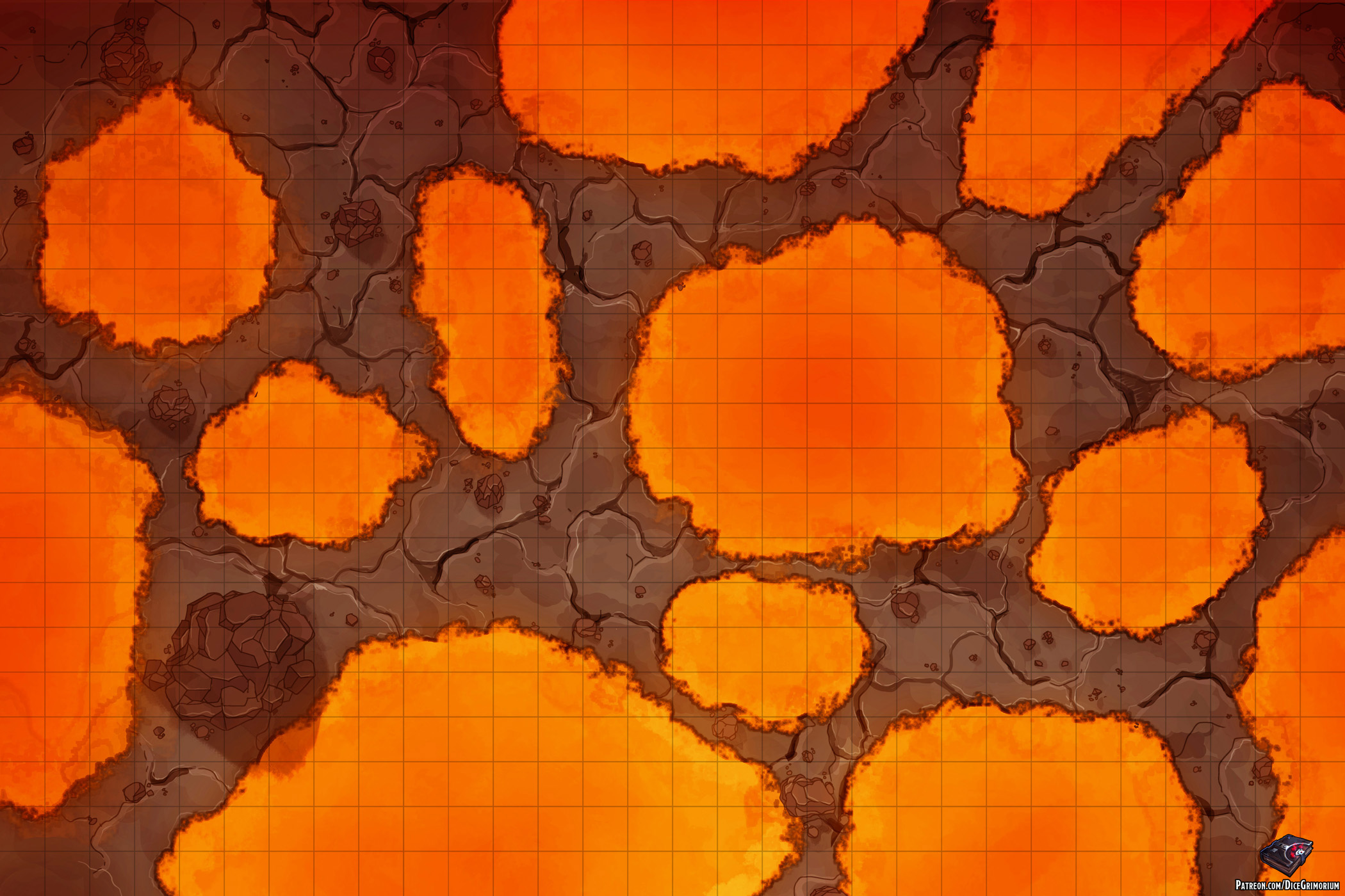 How are you enjoying Descent Into Avernus? I was inspired by the new adventure module to do a battle map that can be used while adventuring in the first layer of Baator. Though if you're not running the adventure fret not, as it can be used as an underground volcanic map too.