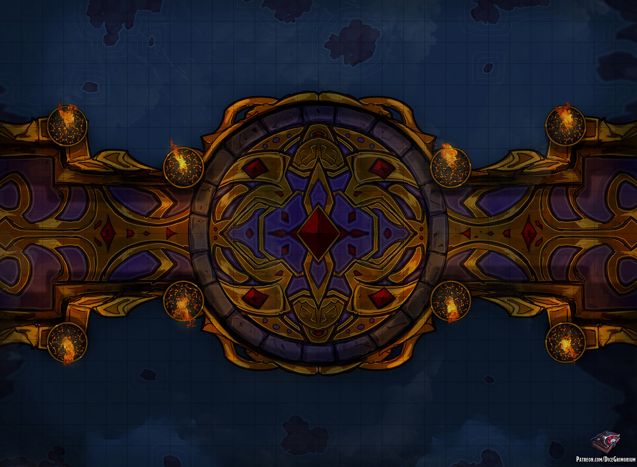 The lavishly decorated bridge, fit for the wealthiest of rulers, is lit by huge fires that may look very welcoming at first. But they could prove a very dangerous hazard should they fall above some unlucky adventurer.
