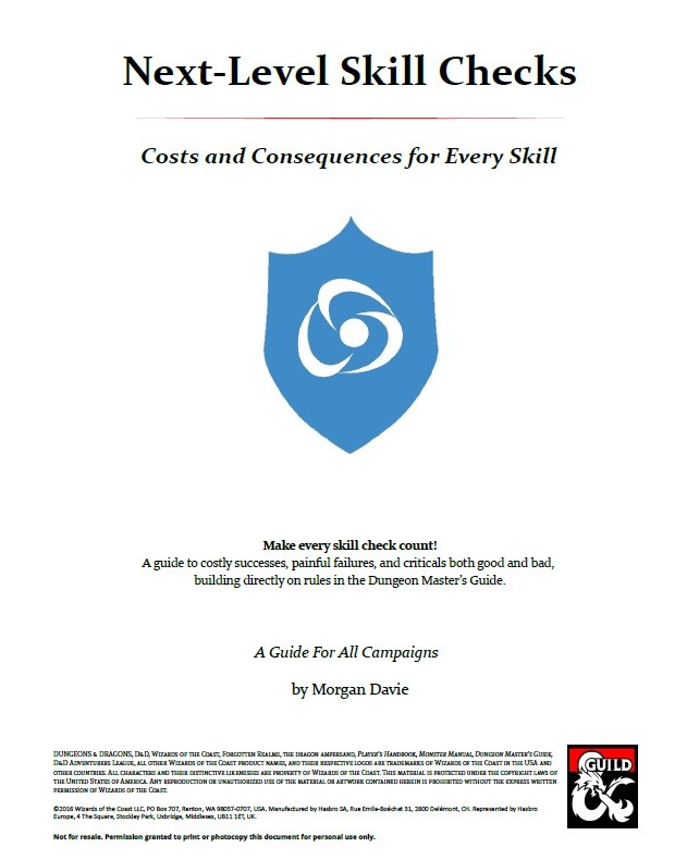 Hi all - delighted to launch my first release for DMs Guild, Next-Level Skill Checks which shines a light on some much-ignored rules in the DMG and spins them up into a mighty engine for exciting fun times...