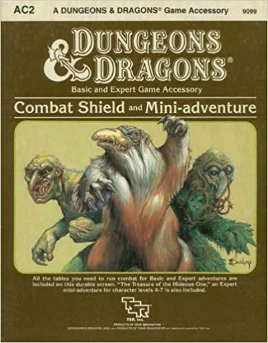 An adventure that doesn't get very much love is David Cook's "The Treasure of the Hideous One," which came free with the accessory AC2, Combat Shield. It's just a simple little one-shot adventure with a straightforward plot and a (very simple) mystery to solve, and the whole thing can be played from start to finish in a single evening. It's not fantastic...hell, it wouldn't even get noticed by today's gamers...yet it was a favorite with my high school gaming group.