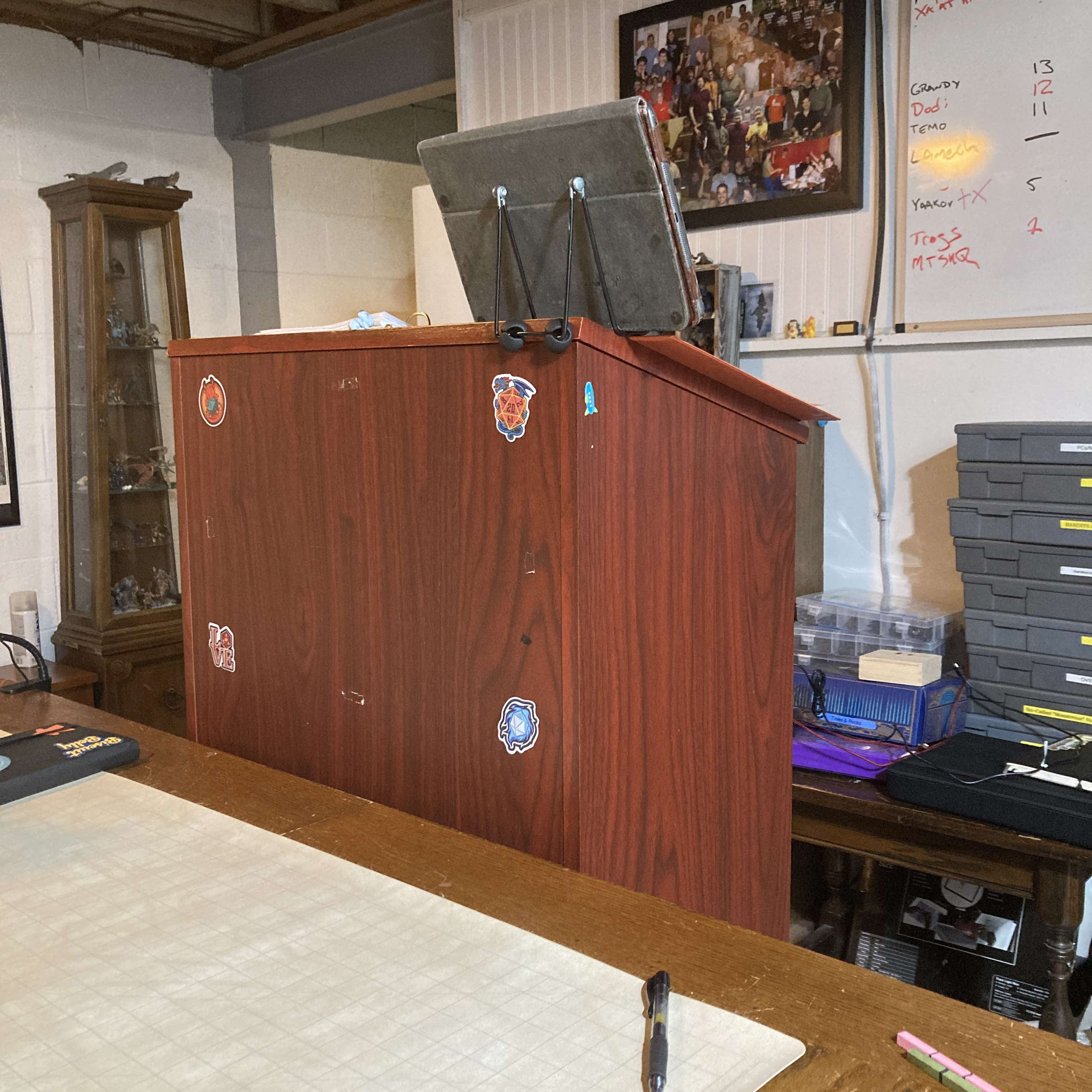 I wonder if there is a decently mobile lectern solution. I want to use one when I run at cons.I used to use them and always made my own. I stopped using one when I switched to a lectern.