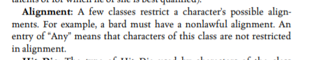 In 3.5 it does let the DM say they can't consistently behave in some ways if they want to still be a Bard or Barbarian or Cleric or Monk or Paladin though, right?