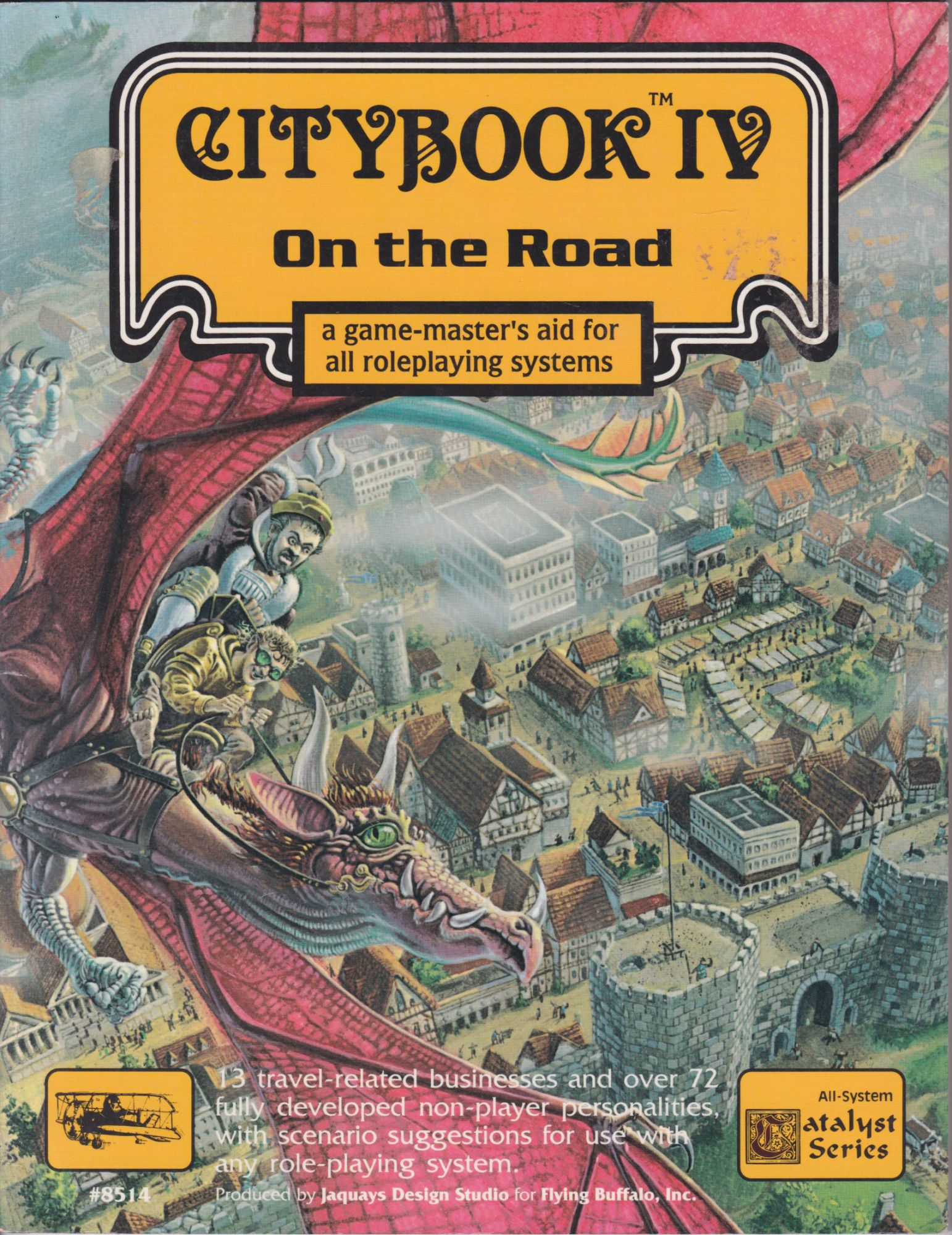 There are three game reviews. Citybook I by Flying Buffalo describes 25 fantasy city establishments in a system-agnostic way. With rich narratives and character sketches, it is a modular product for any fantasy roleplaying campaign. Reviewer Ken Rolston describes it as "...an excellent resource. The settings, characters, and narrative potentials of the materials are imaginative and appealing." The book later won an Origins award and is still highly regarded today.