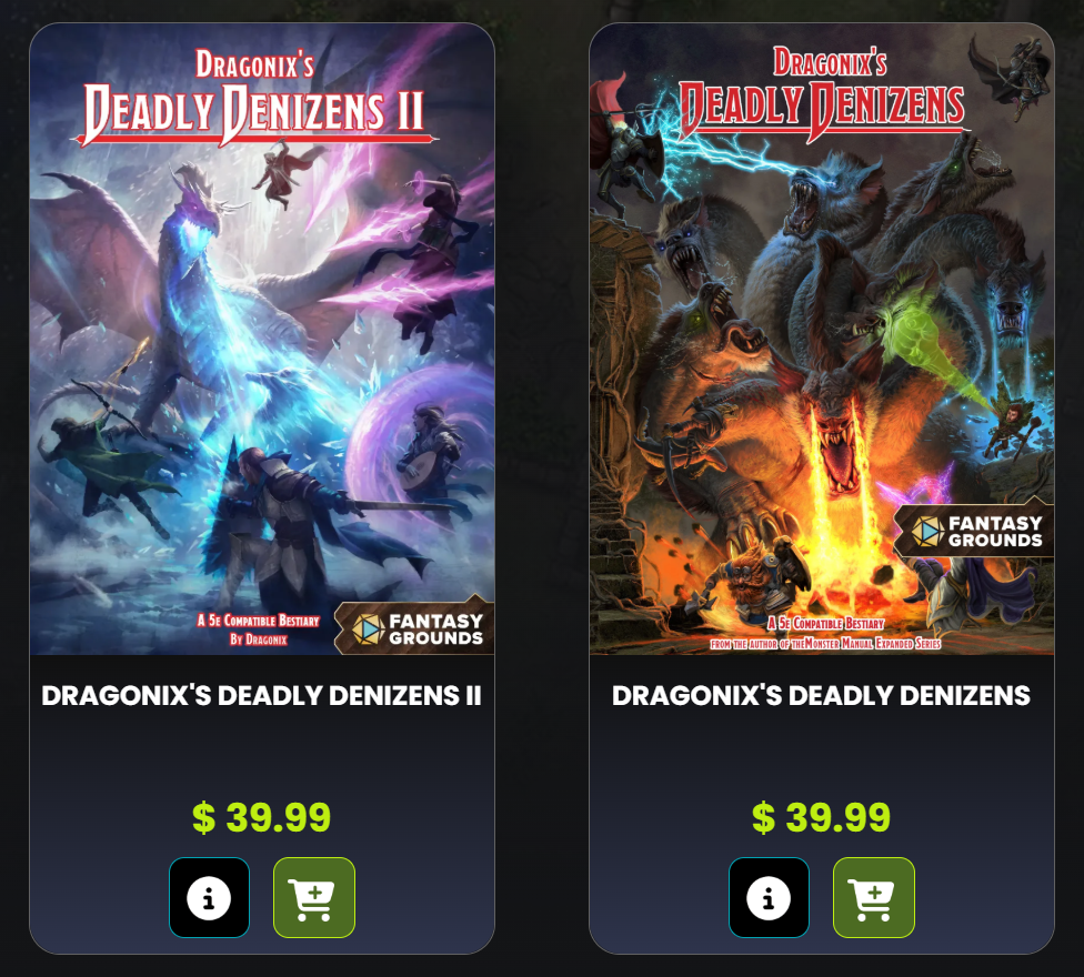 I wonder if there are any plans to have the Deadly Denizens Vol 1 and Vol 2 sold for Fantasy Grounds like the Monster Manual Expanded series?
