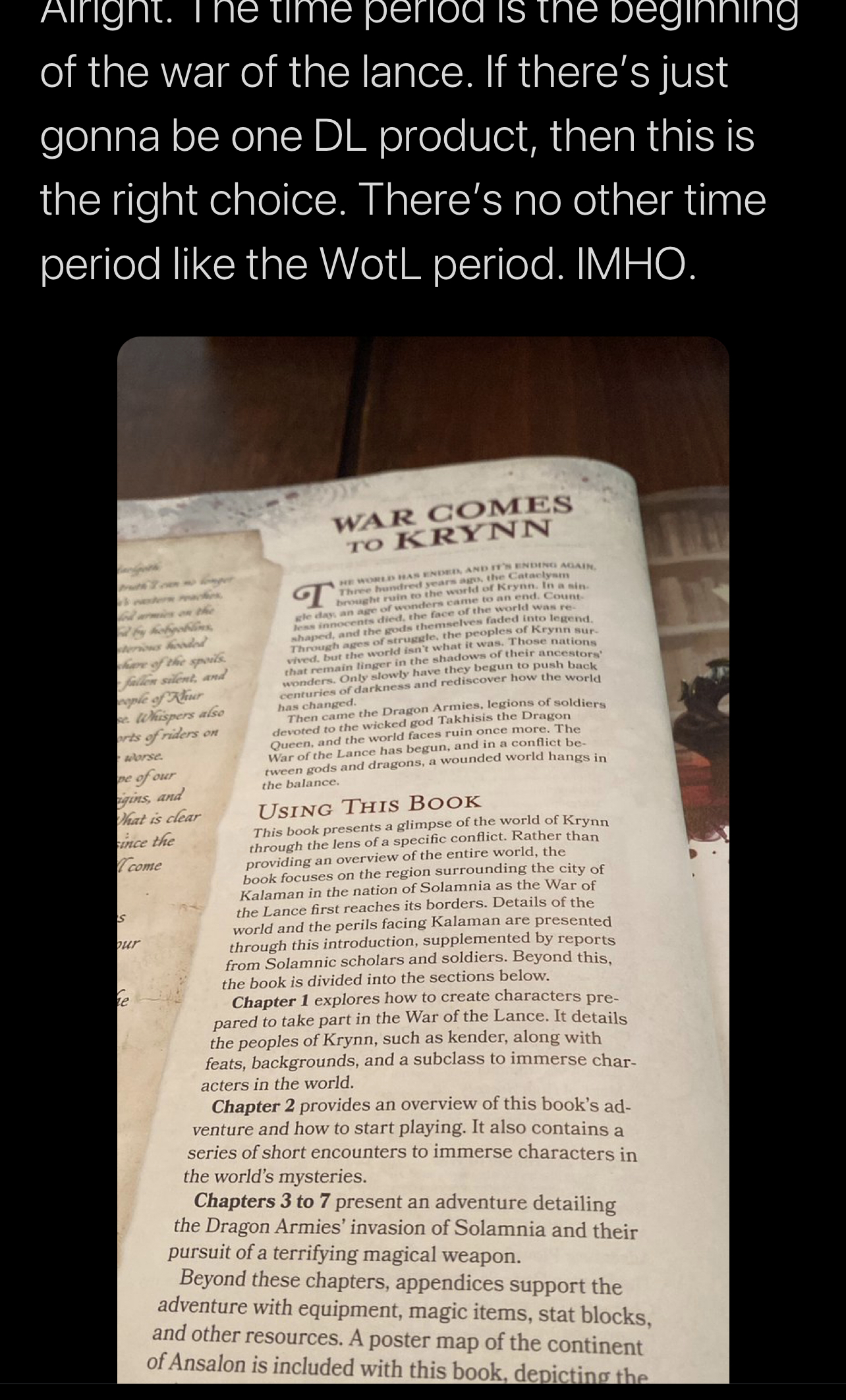 Butbutbut it doesn't tell my players orcs are banned! It tells them to play them as non-natives! Dragonlance is ruined!And there it is. Hundreds of pages of tedious internet debate solved in the exact way that most people assumed.