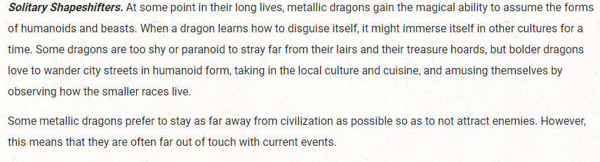 It "forces" evil dragons to have minions/lackeys to stuff for them, and this is an possible avenue to adventure?Does anyone else find it weird that only the 'good guy' dragons are naturally capable of infiltrating humanoid society?