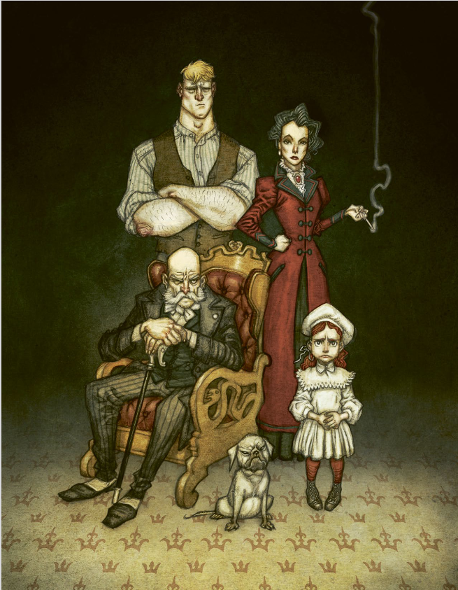 In it is a picture of a family, with the hair-color temperaments. Blond mellow rational, black somber protective, red fiery, gray dissociated. The expressions are so spot on, surely the artist is portraying these temperaments intentionally. But who knows, perhaps the artist is expressing these worldview concepts unconsciously.