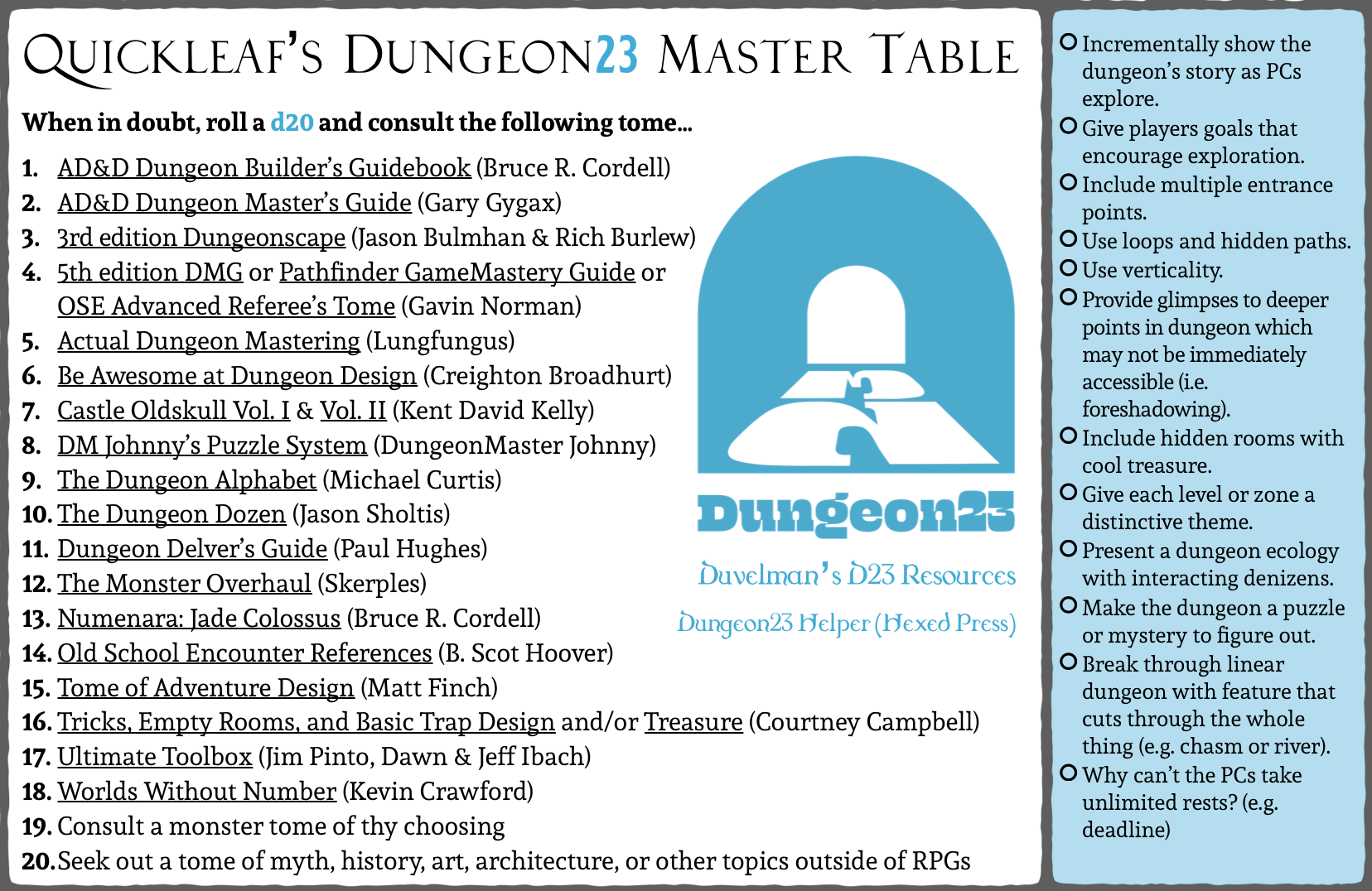 There is a bunch of great stuff on that list, but by far my favorite must be The Dungeon Alphabet.