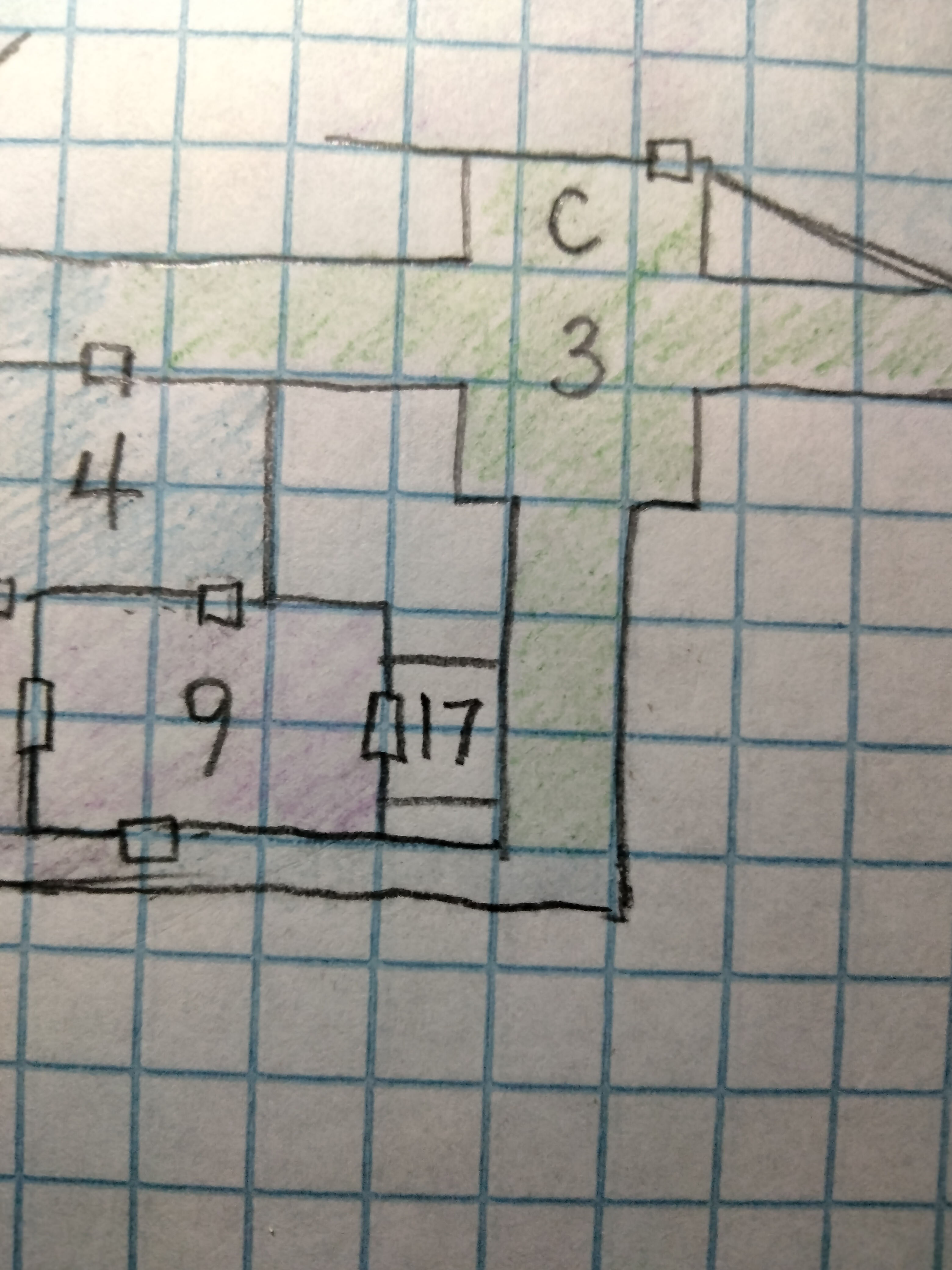 You're really good at drawing top down objects, like the bed with the pillows. If I tried to do that it would just look like a bunch of rectanclesDay 78 - Courtyard of the Warden's House (Crystal Mine)