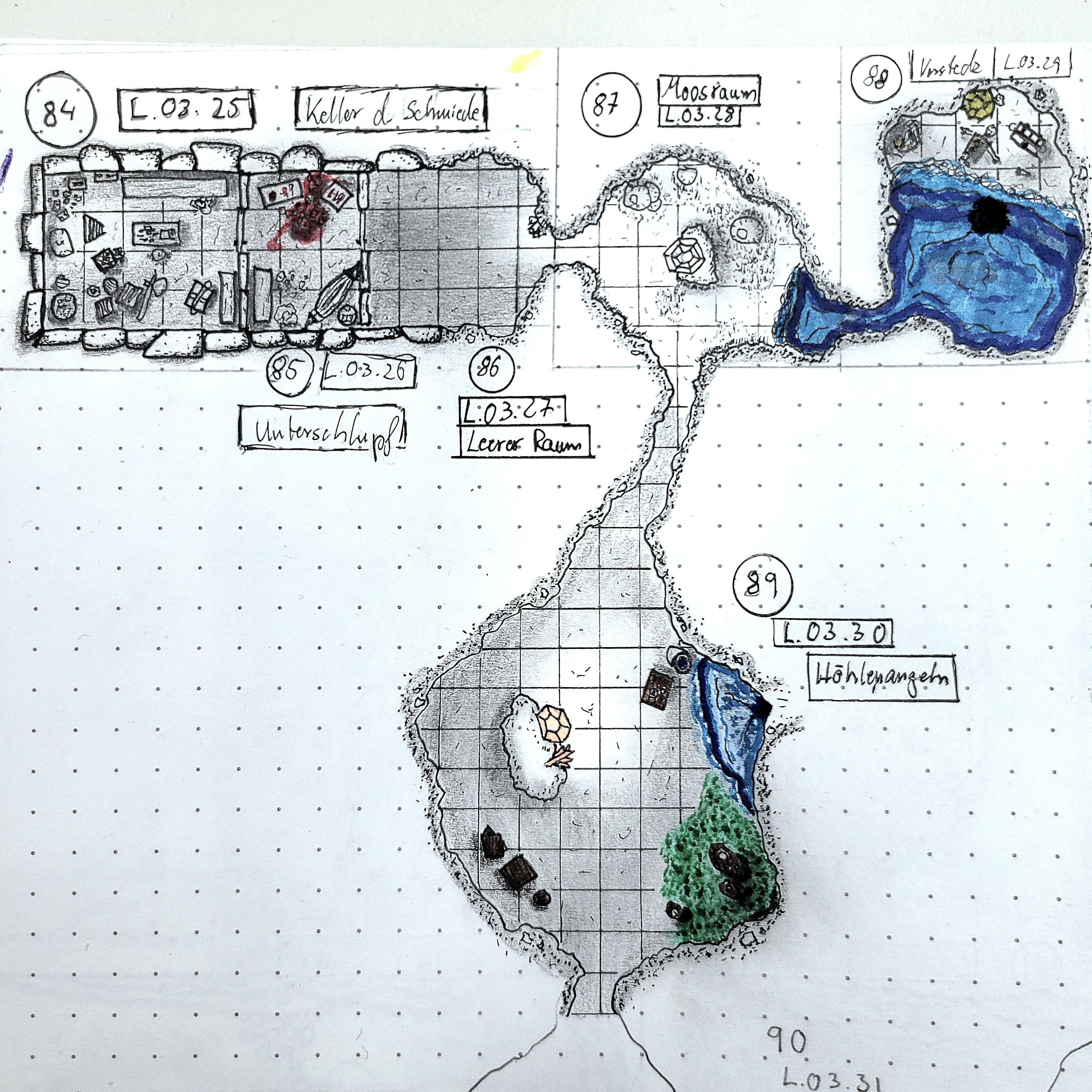 I may still be caught up with where I'm supposed to be. I've actually started (finally.) mapping out parts of the dungeon complex(es)...