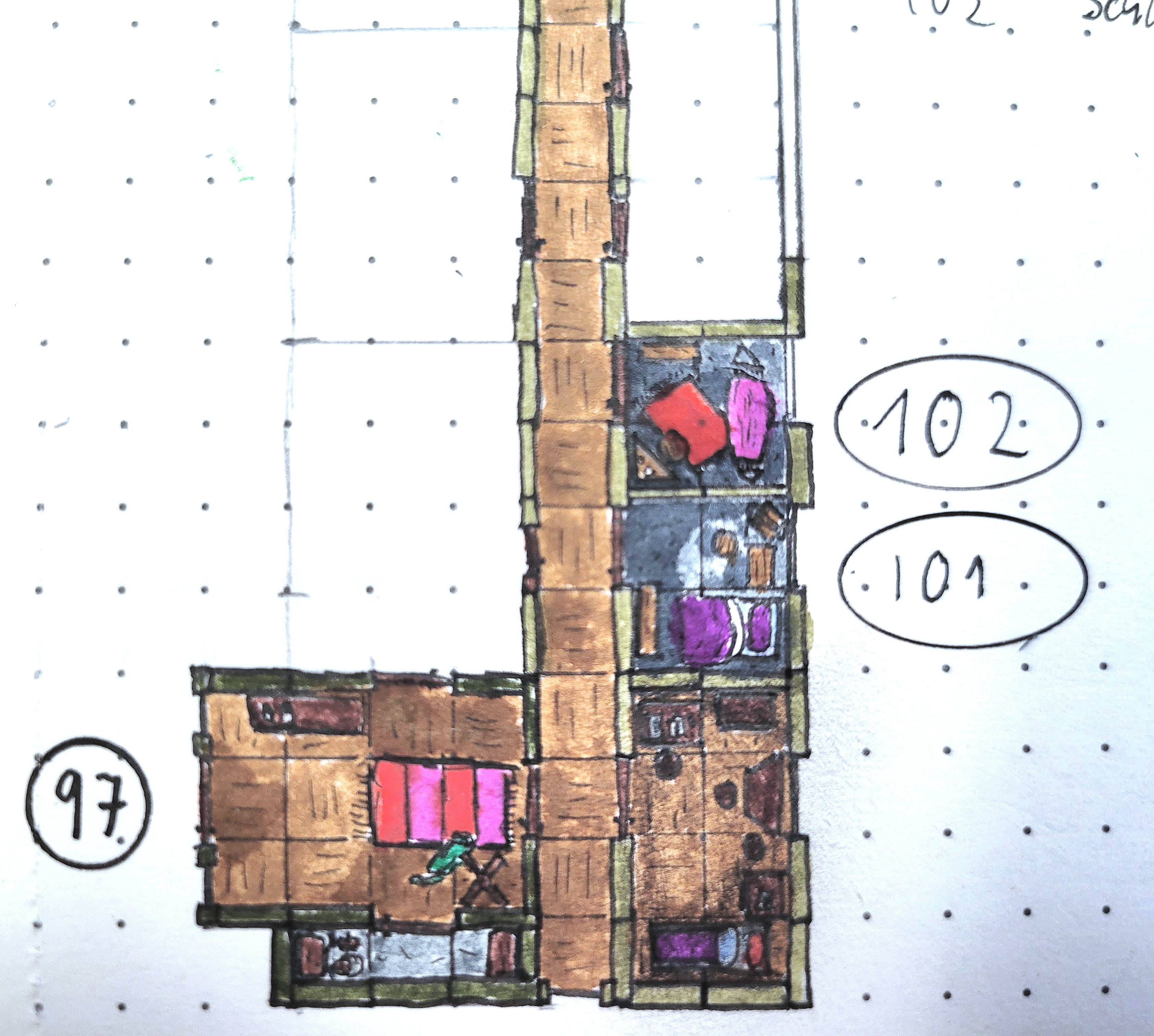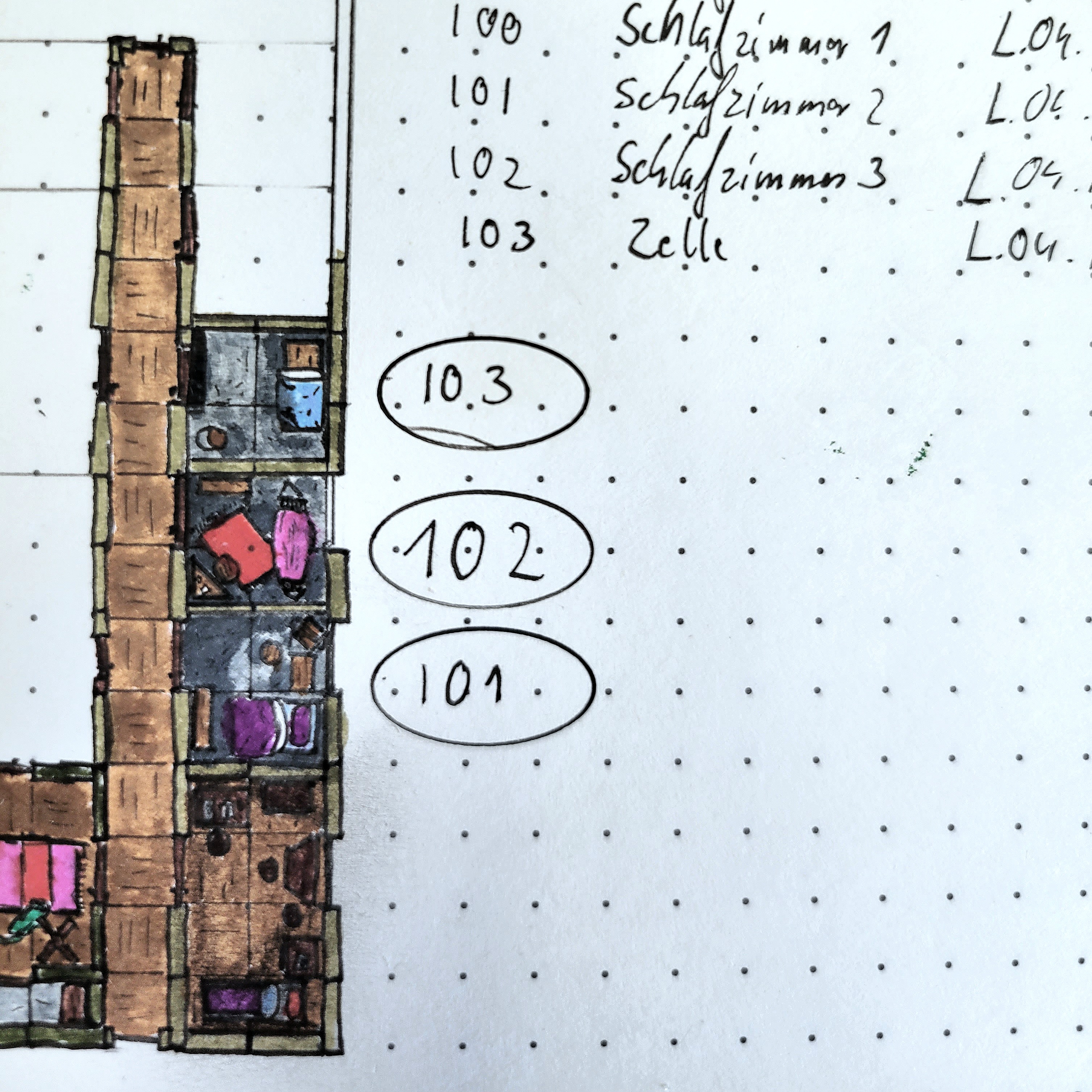 Ah, der Schlafzimmer... I note also from here on out you'll be using ovals instead of circles for your numbers... Congrats on hitting day 100!