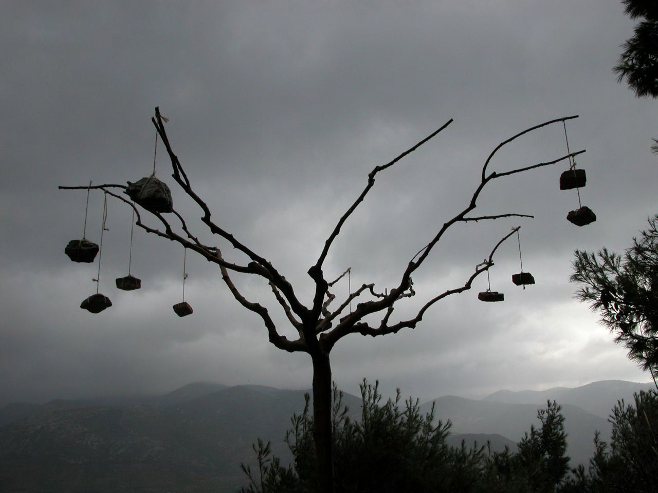 Jessica stepped back, surprised. Then, hope spread across her face. She touched her hands to her wrists and said, “Nathan…” He went to her, tugged on the knots ever so gently and they fell apart. The stones fell to the ground. The others in the courtyard saw this and became excited. They ran to each other and, soon, no one was burdened with a stone. Celebration erupted. The jumped and shouted and cheered. Nathan grabbed the ropes to his rocks and ran through the open portcullis. He took hold of the ropes and spun as if he were a state champion in the hammer throw instead of the hurdles. Then, he let them fly. The rocks spun through the air and finally caught in the branches of an old tree. Others cheered and ran to throw their stones from the mountain as well. Hundreds of stones littered the mountain side. Many, including Jessica’s, joined Nathan’s on the tree – hanged there, burdens put to death, never to weigh their owners down again.