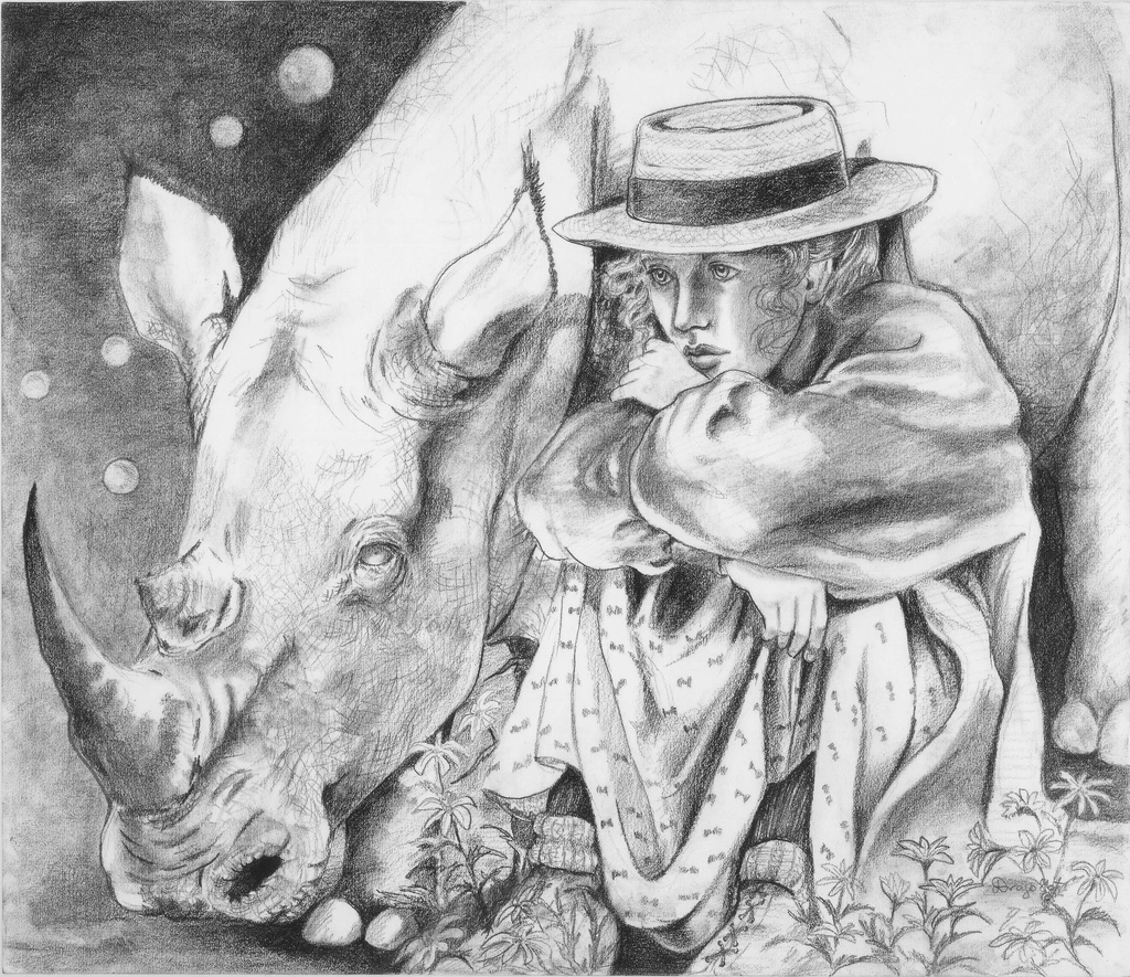 “You…” Nathan was utterly shocked, “You have them too?” Jessica just nodded and began to cry. Slowly, the stones still weighing heavily, Nathan went over to her and they sat down together. She handed him a canteen and he drank. Then, for a long time, neither said anything. They watched the fire together and just rested. At last, Nathan motioned at the rhinoceros next to them, “So, who’s your friend?”