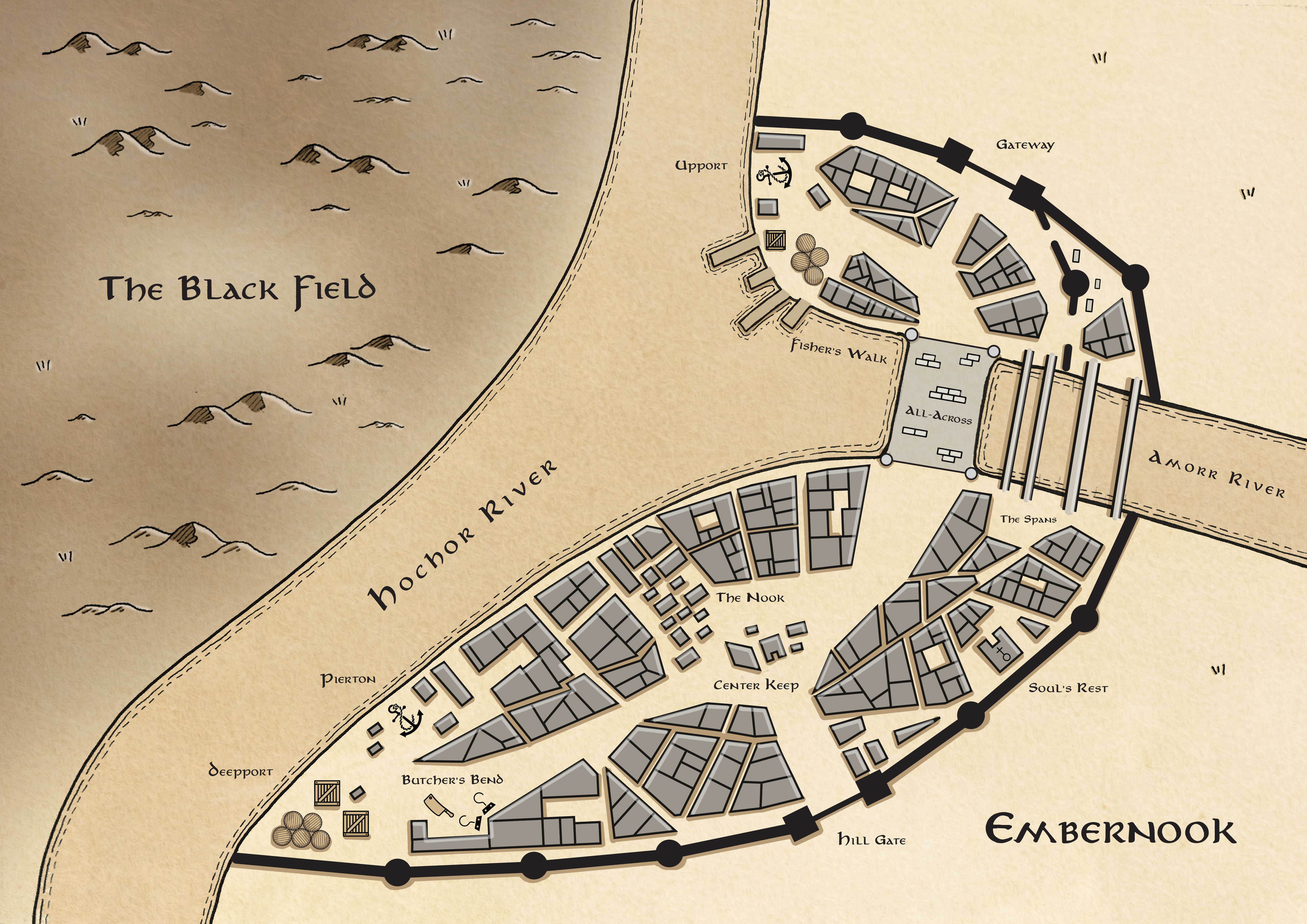 We started on the last day of the 3 day Summer Solstice Festival, the Feast of Sky. All of us were, for our various reasons and in our various individual capacities, on the streets on the edge between the Nook neighborhood of Embernook (not a nice part of town) and Pierton (where the shipyards for building and repairing boats are). We were on or around a street that ran along the river.