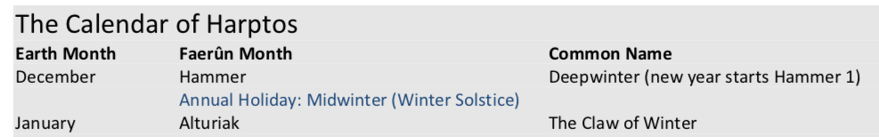 Basically, the shift of the winter equinox went from Nightal 20 to Hammer 31/Alturiak 0, which is a shift of 40 days. The same for the summer equinox. This would have wrought unholy havoc on crop cycles, and if it becomes a permanent change, will just result in the migration of the annual festivals—which don't care one little bit about the synchronicity of Faerûnian and Earth Midwinter, but absolutely wouldn't keep celebrating a holiday like Greengrass on a date when it's unlikely that there is any actual green grass. (emphasis as the original)