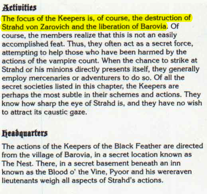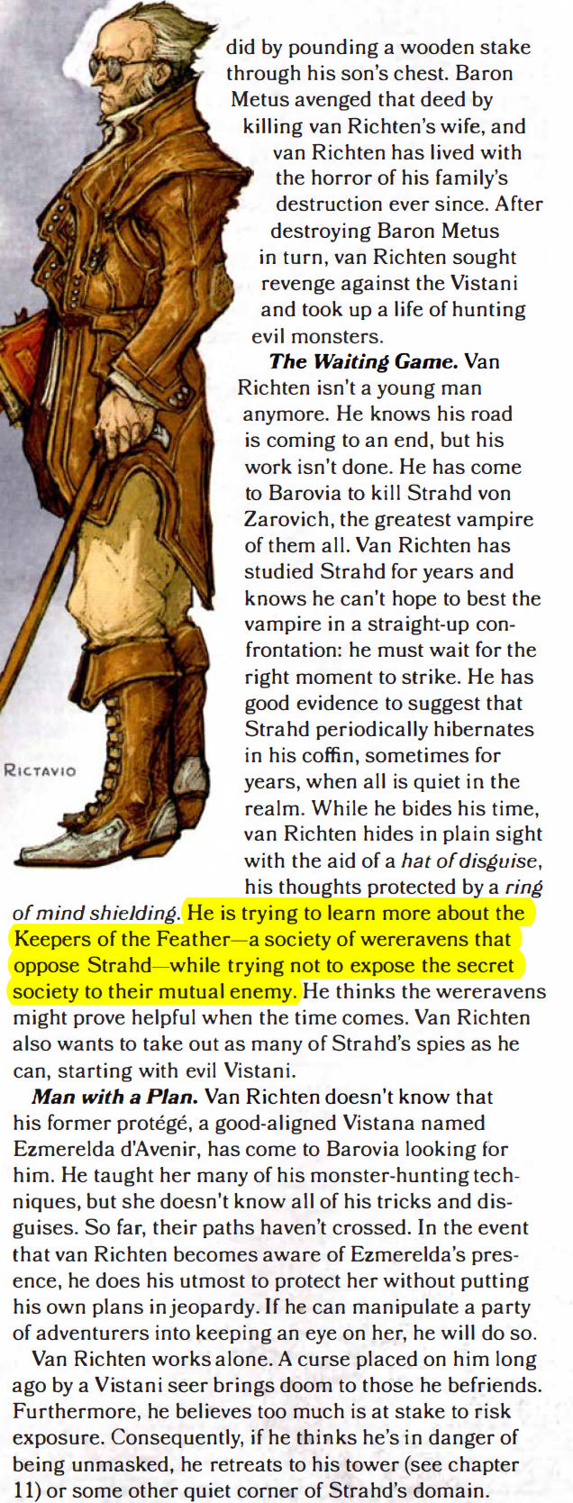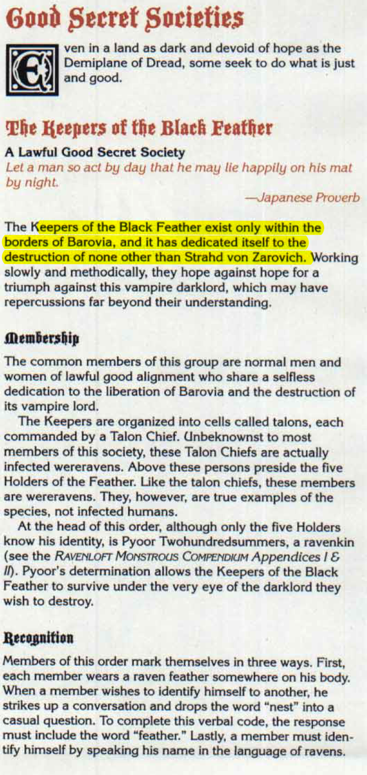 Again, I have no problem with the claim that the Van Richten books were amazing. I have no problem with the claim that they elevated Ravenloft to new heights. But if you don't think the setting works without them... that is a problem with the design of the setting. Not the design we ended up with, but the design we started with.