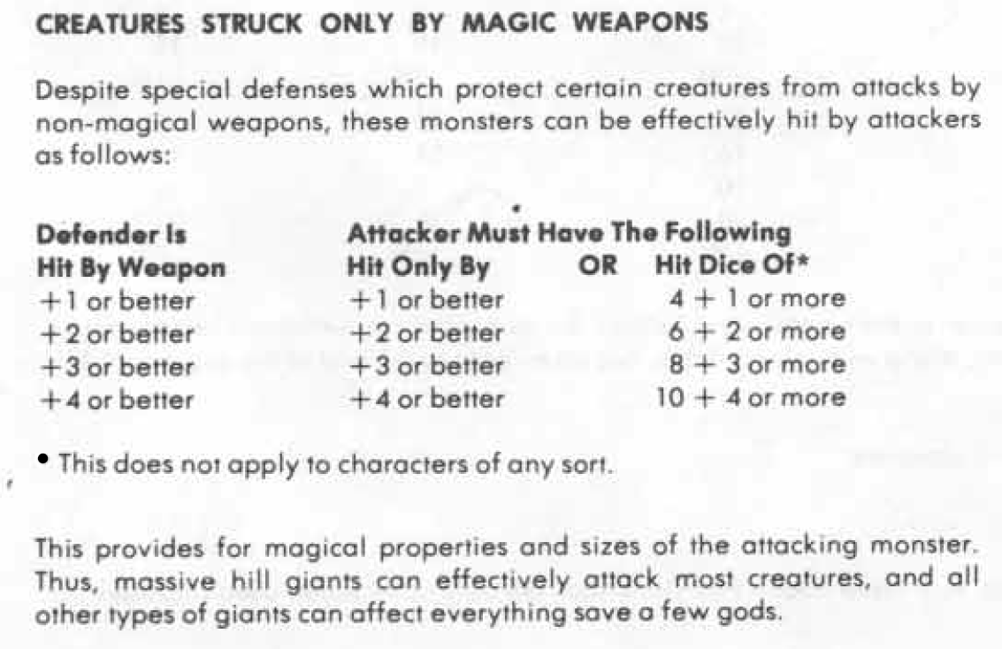 So, an Ogre (a 4 + 1 or more HD creature), could hit and injure creatures which required a +1 or better weapon to hit.