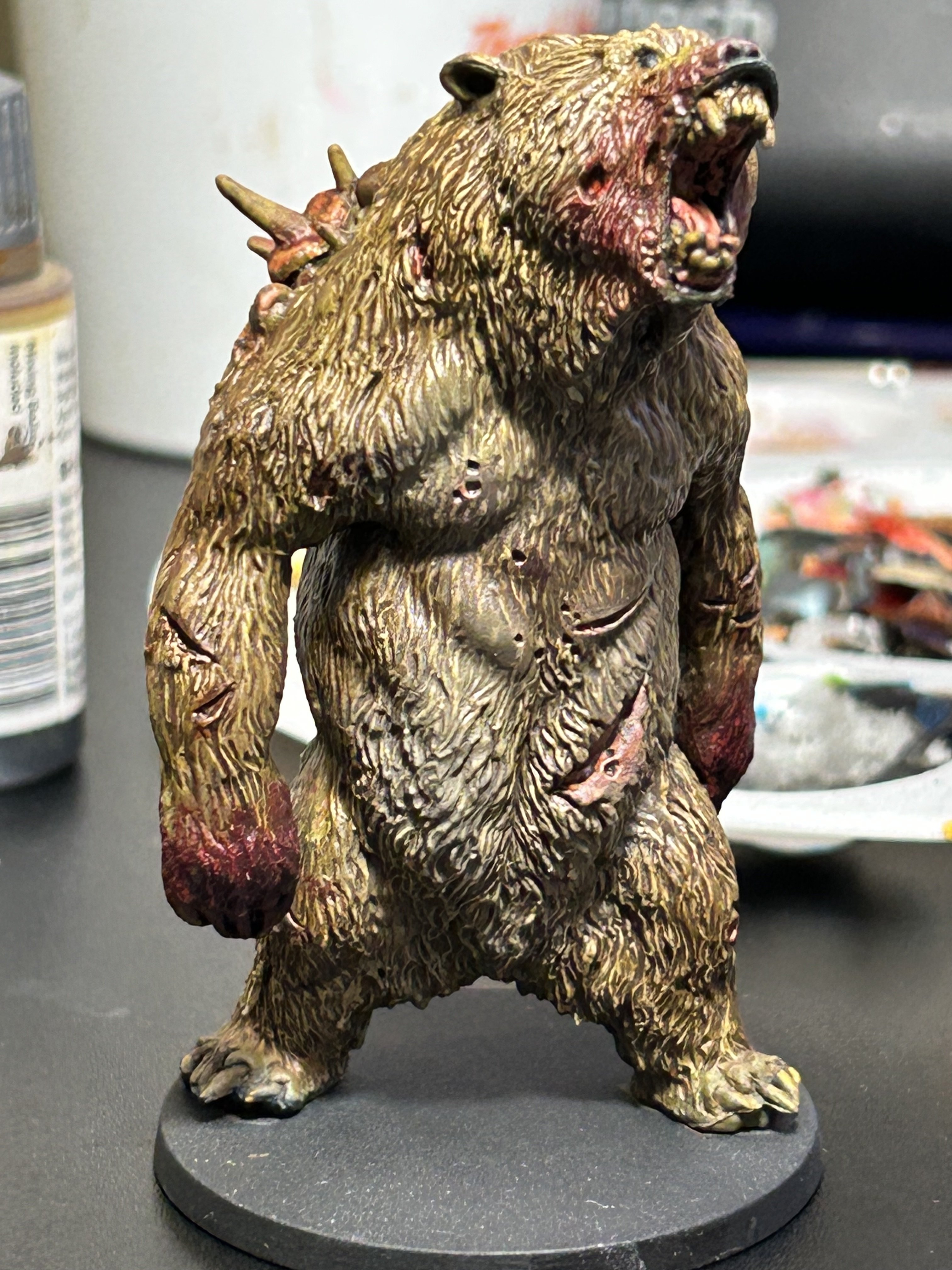 Are you using Army Painter matte varnish? I've used it out of a rattle can, and I find after it sets, the mini just ends up looking glossier than it did before.Another touch up on an old mini. It always bothered me that there was no variation in fur color so I lightened up the belly. I also applied an matte varnish because the old one was too shiny.