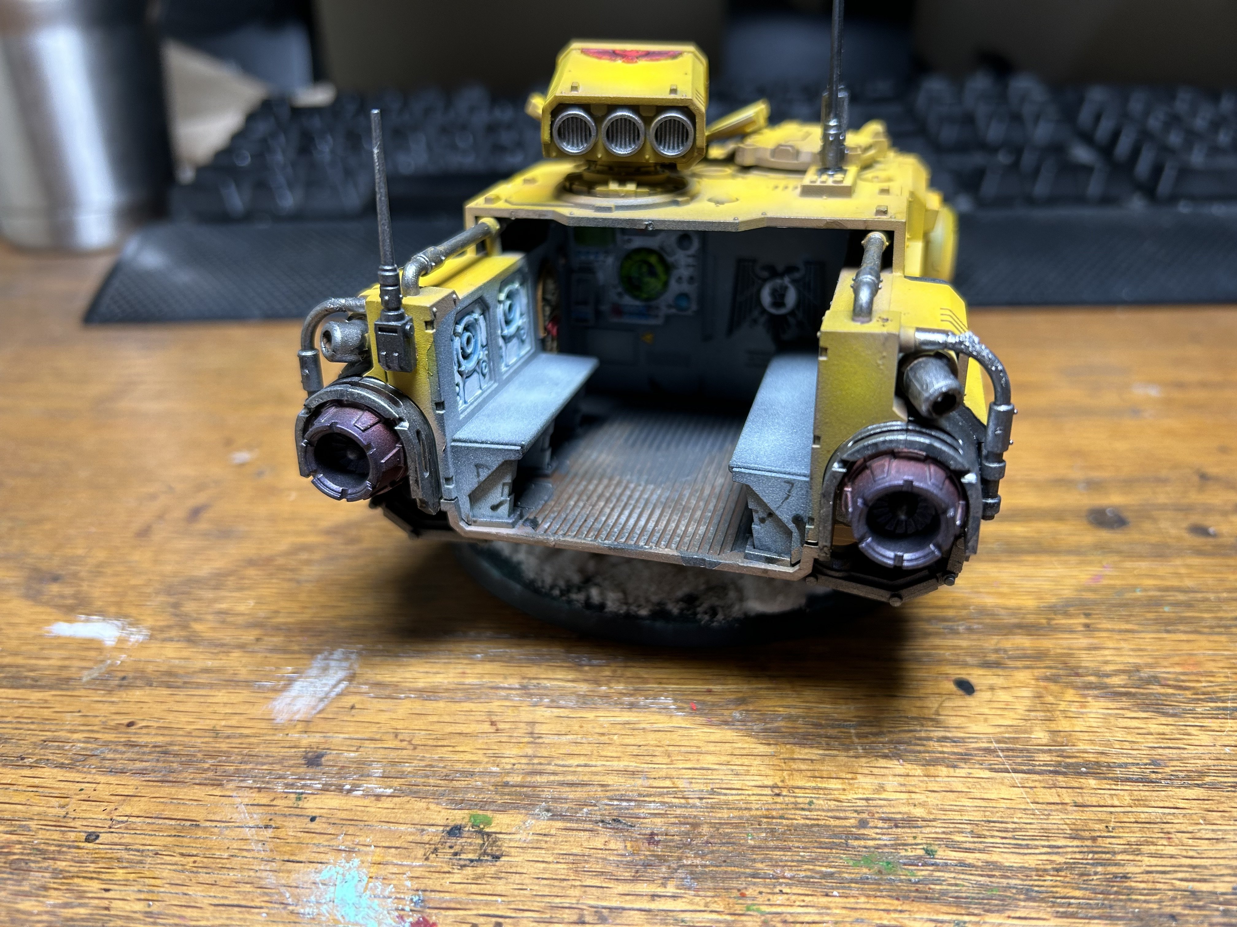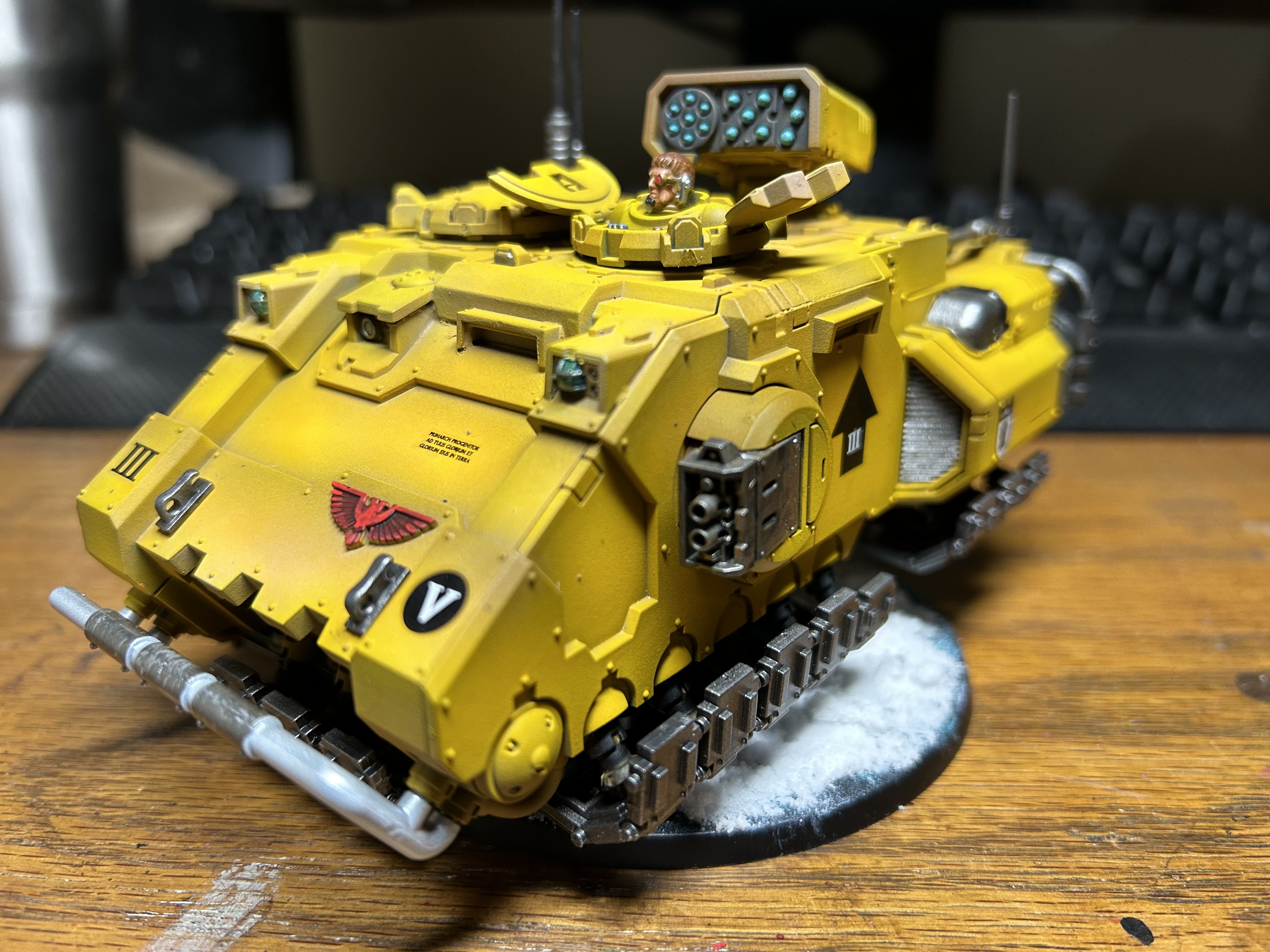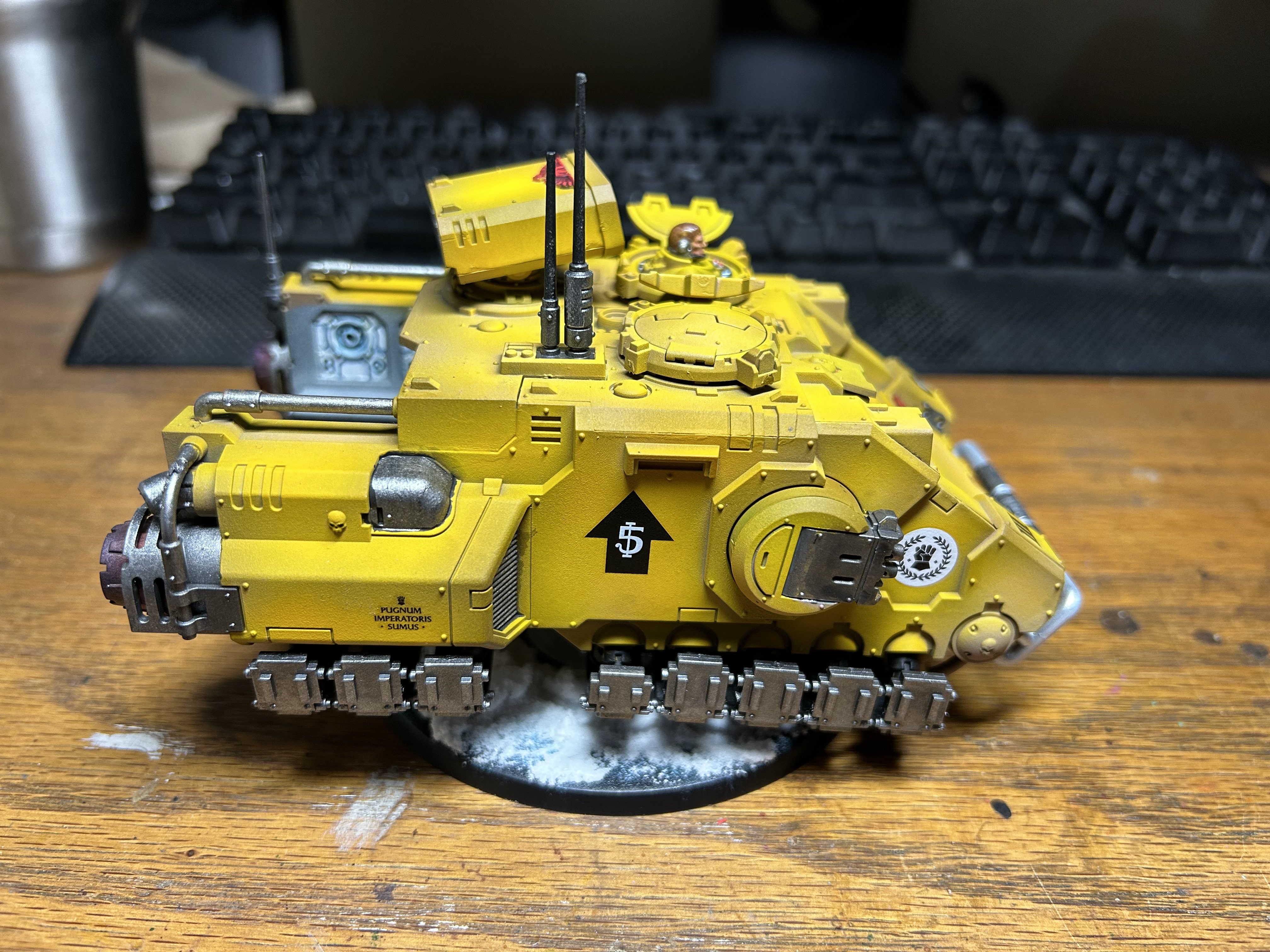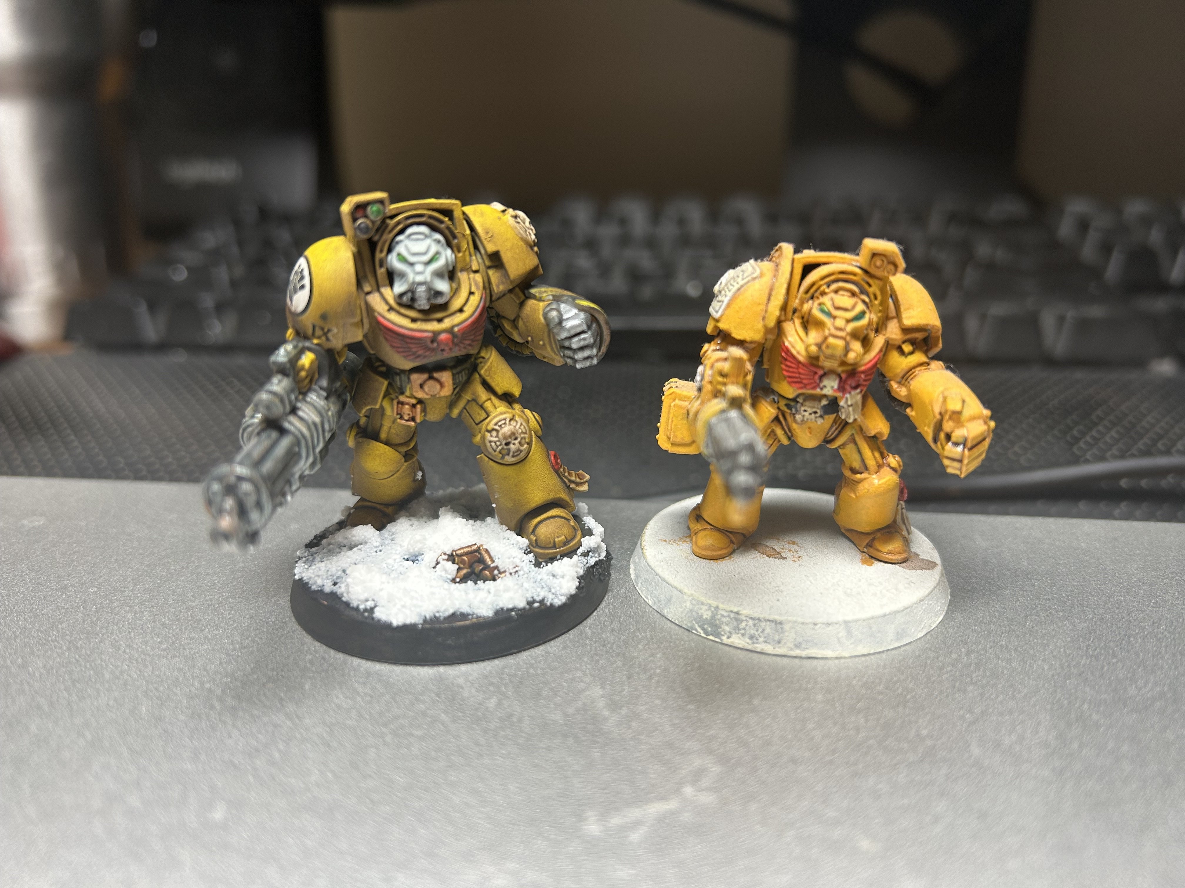 Yellow is a very, very silly color for a military scheme. I've never been on a modern battlefield, but it seems to me that you wouldn't want to stick out of the terrain like a sore thumb. I don’t know why I picked Imperial Fists, probably because I don’t see them played that often, but I started with them years ago. Here’s an old school terminator I painted years ago next to a new one.I think its perfect! Then again, I really dont like the color yellow, and even less when its bright.