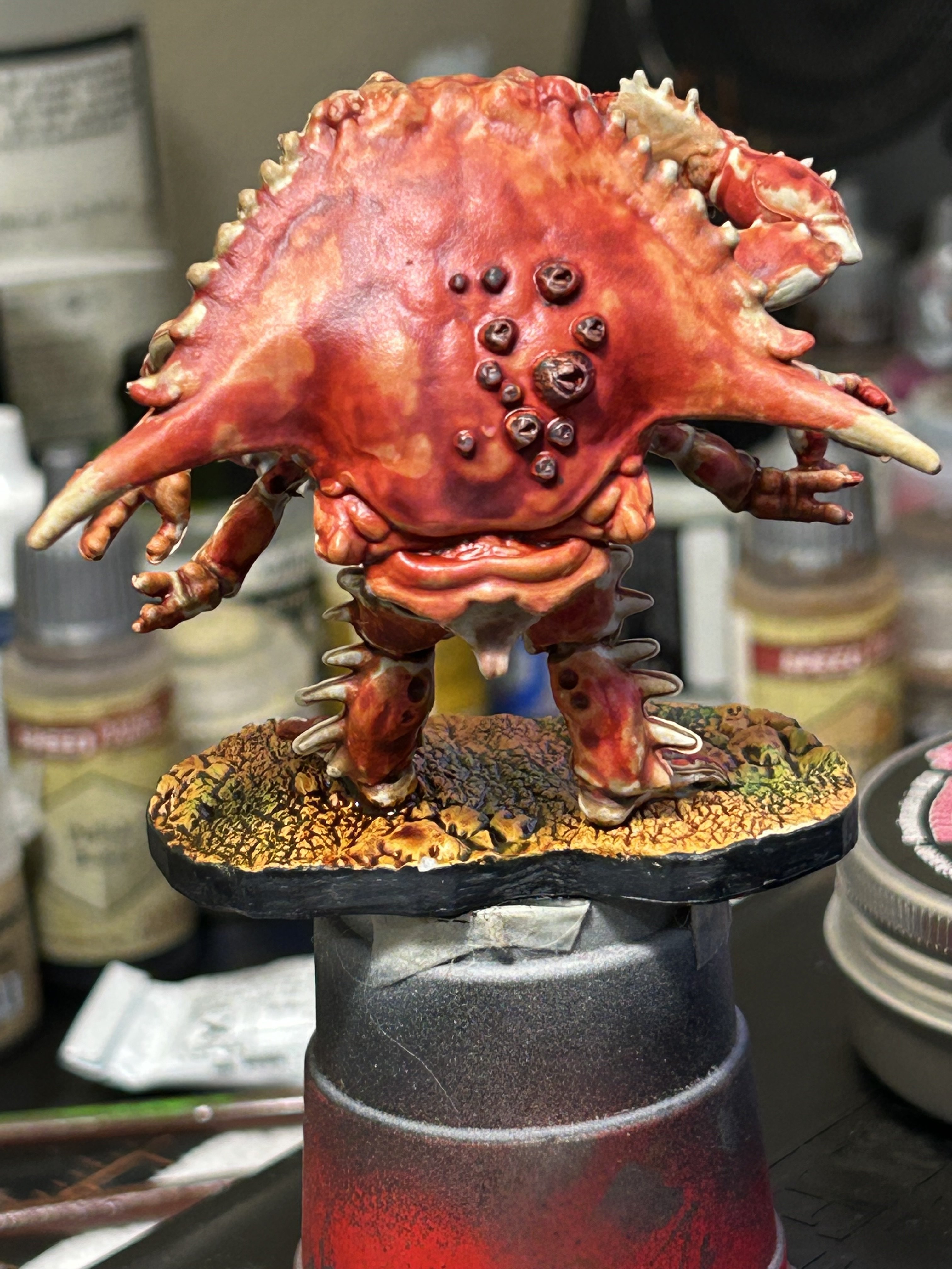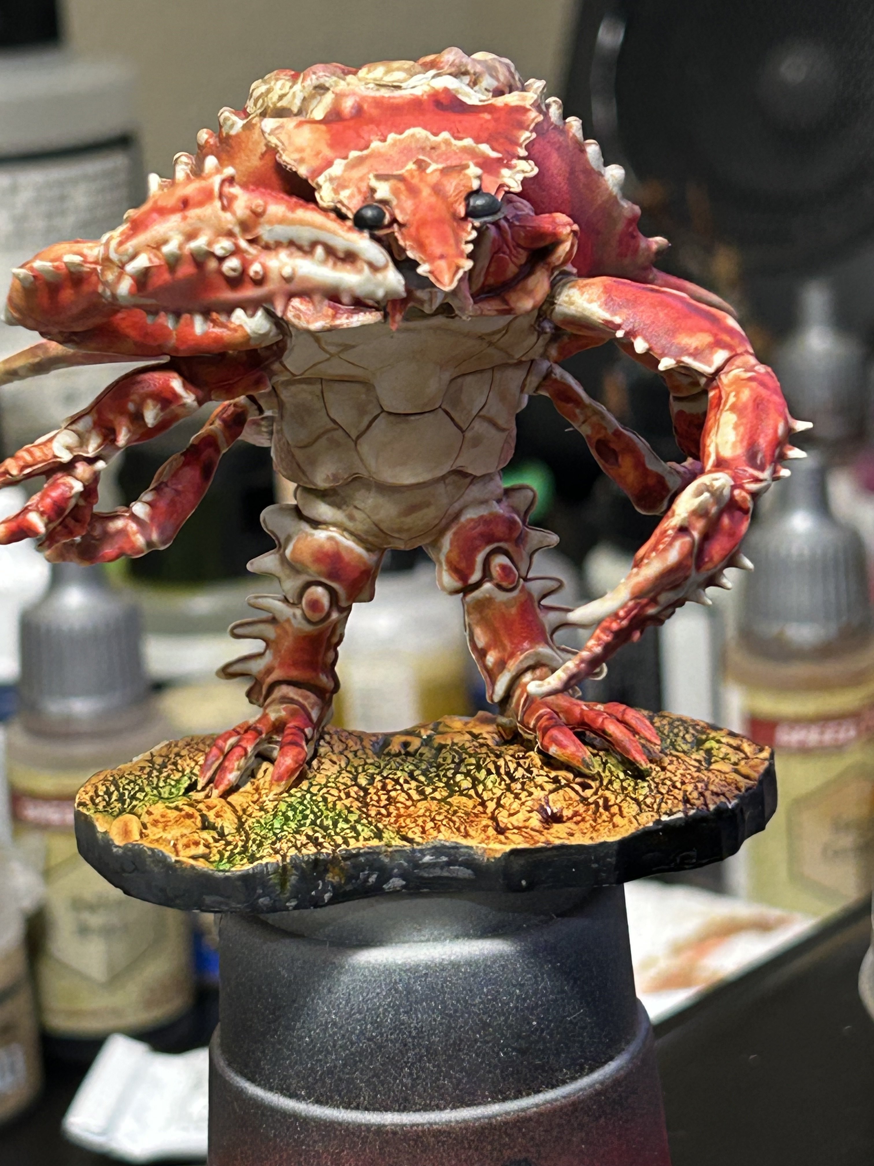 I got this Reaper Bones crab man for a $1 at a miniatures swap meet hosted by my FLGS. It was the first thing I painted when I got back home.