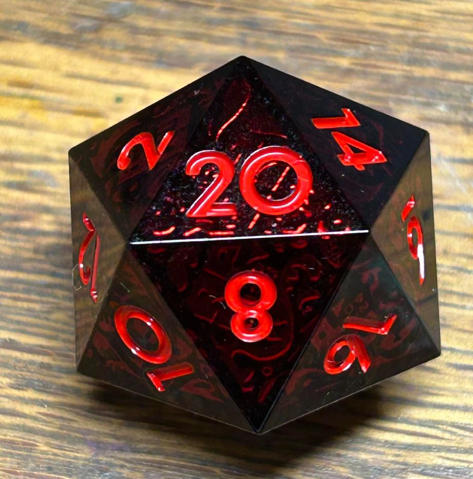 - Free RPG Day 2024 Rococo Red Iconic D20 from Dispel Dice. This D20 is black with undertones of red and would sell for a lot more than free.