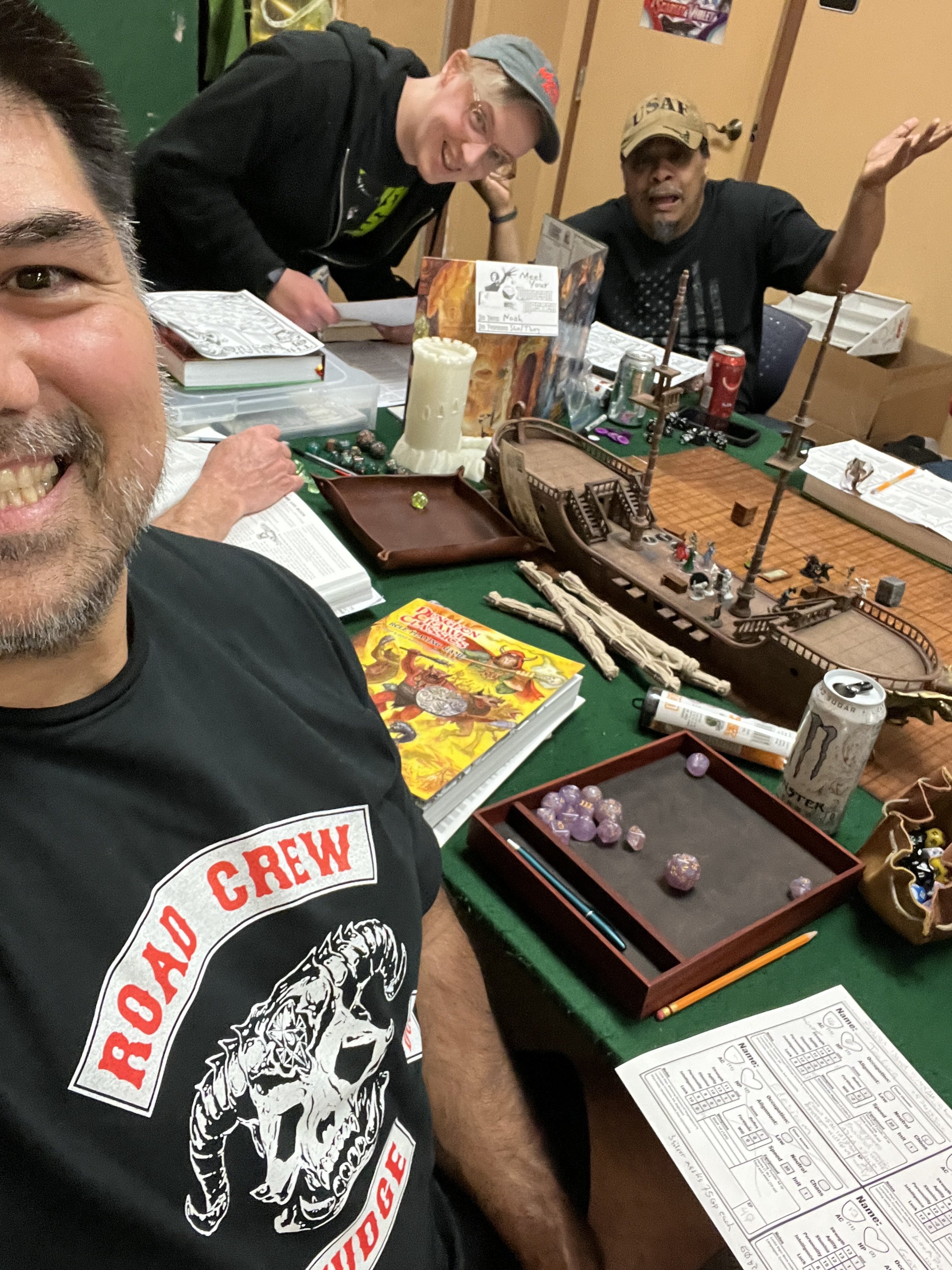 My game is Monday night. Her game rocks on toast!Damn. Wearing a Road Crew Judge shirt when someone else is running the game? Way to flex.