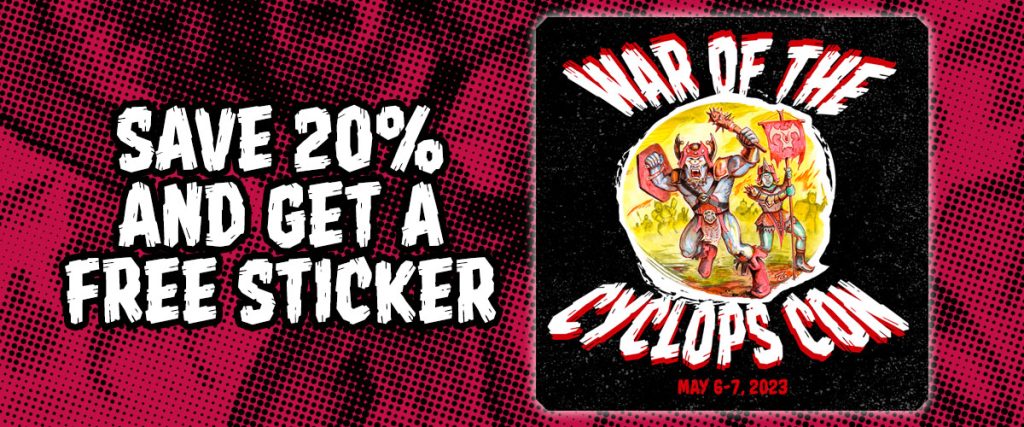 20% code CYCLOPS2023 and free sticker from Cyclops Con at Goodman Games store. Only till the end of the weekend.