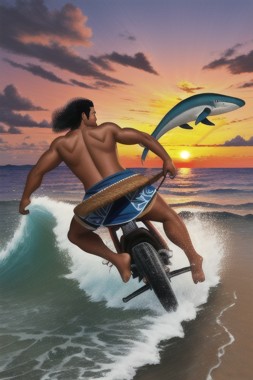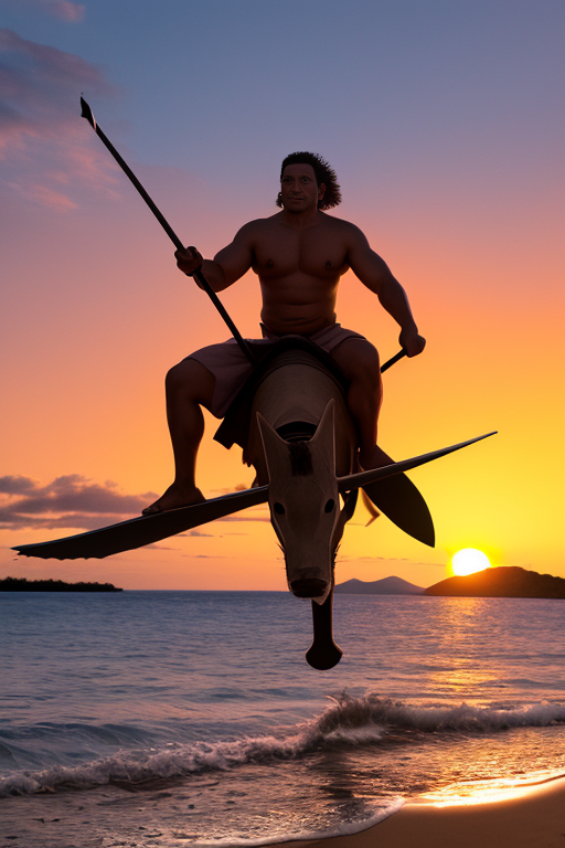 so i got some really cool ones that are "kind of" what the prompt says then I tweaked the prompt to make it Ancient Samoan riding a shark against a tropical sunsetAncient samoan shark rider against a tropical sunset