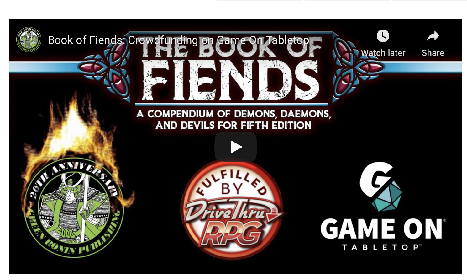 Green Ronin has launched the crowdfunding campaign for their Book of Fiends -- a hardcover book of demons, devils and other assorted nasties.