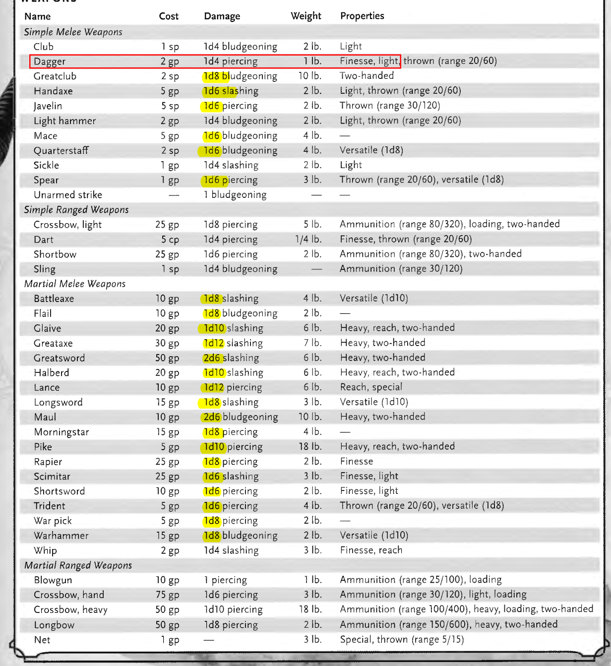 Dagger with 18 dex, 2 attacks (aka 5th level): 6.5 DPR (50% hit)