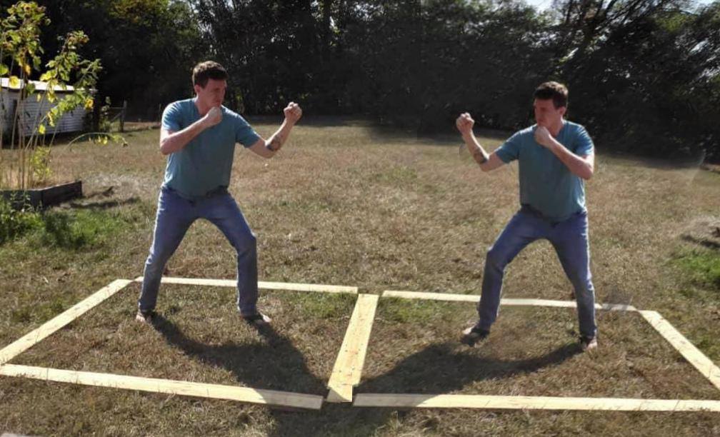 Way too close dude you are supposed to have to move inside to hit the enemy those guys are already inside each others weapon reach bad form bad form,I can't remember who did them, but I think I got these from Owen K.C. Stephens's social media. It's the same image flipped so you can see the space with two combatants, then photoshopped with sword and shield (though the swords look a bit large, like 2-handed swords being used one-handed).