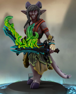 Try to tie the colors used on the weapon back to the character as well. The battle-gnome's sword and slightly blue-tinged hair and blue eyes hook up a bit. And on the tiefling, I modified some of the otherwise white bits to match some of the colors used for her necrotic-acid blades.