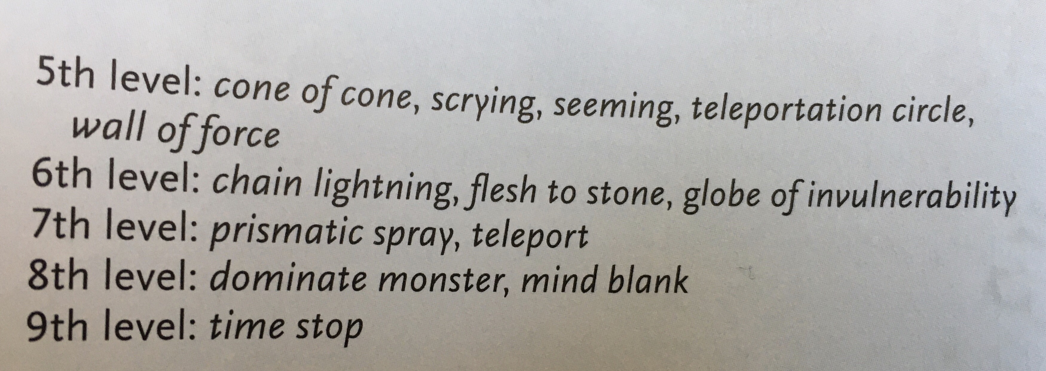 Check out the first 5th level spell in this mage’s spellbook: