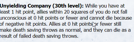 And as capstone I'd give them Legends Live On : gain a fourth death saving throw before death and any death saving throw by an ally with Presence gain the usual benefit of a roll of 20 on a roll of 15+.