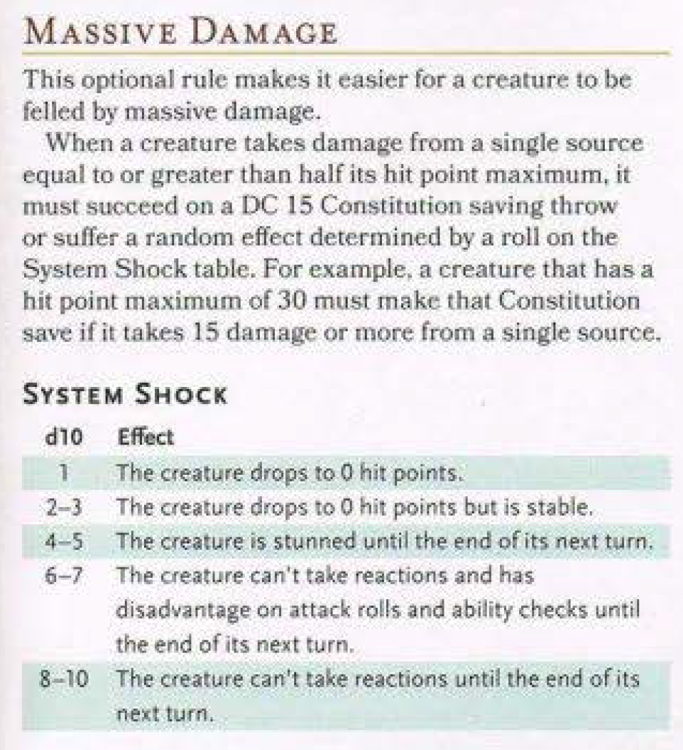 A bit of something I don't recall if anyone posted about yet is including the massive damage rules: