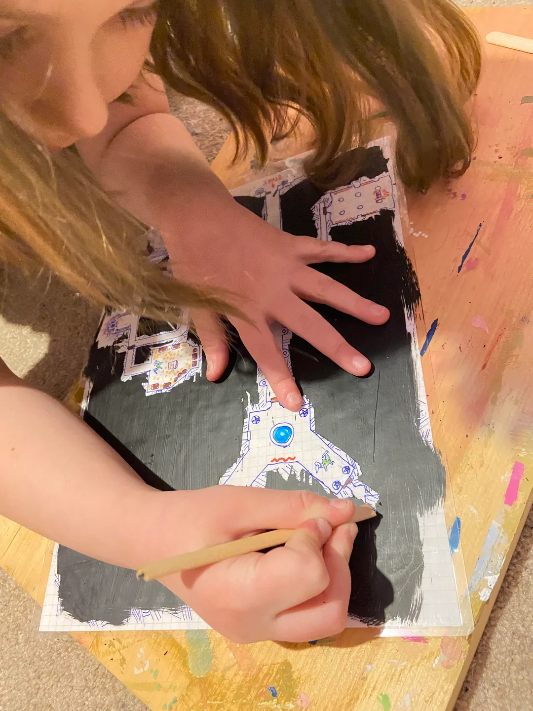 When looking at big dungeon maps (say barrowmaze) one would have to scratch very carefully to not accidentally uncover secret doors or adjacent rooms.
