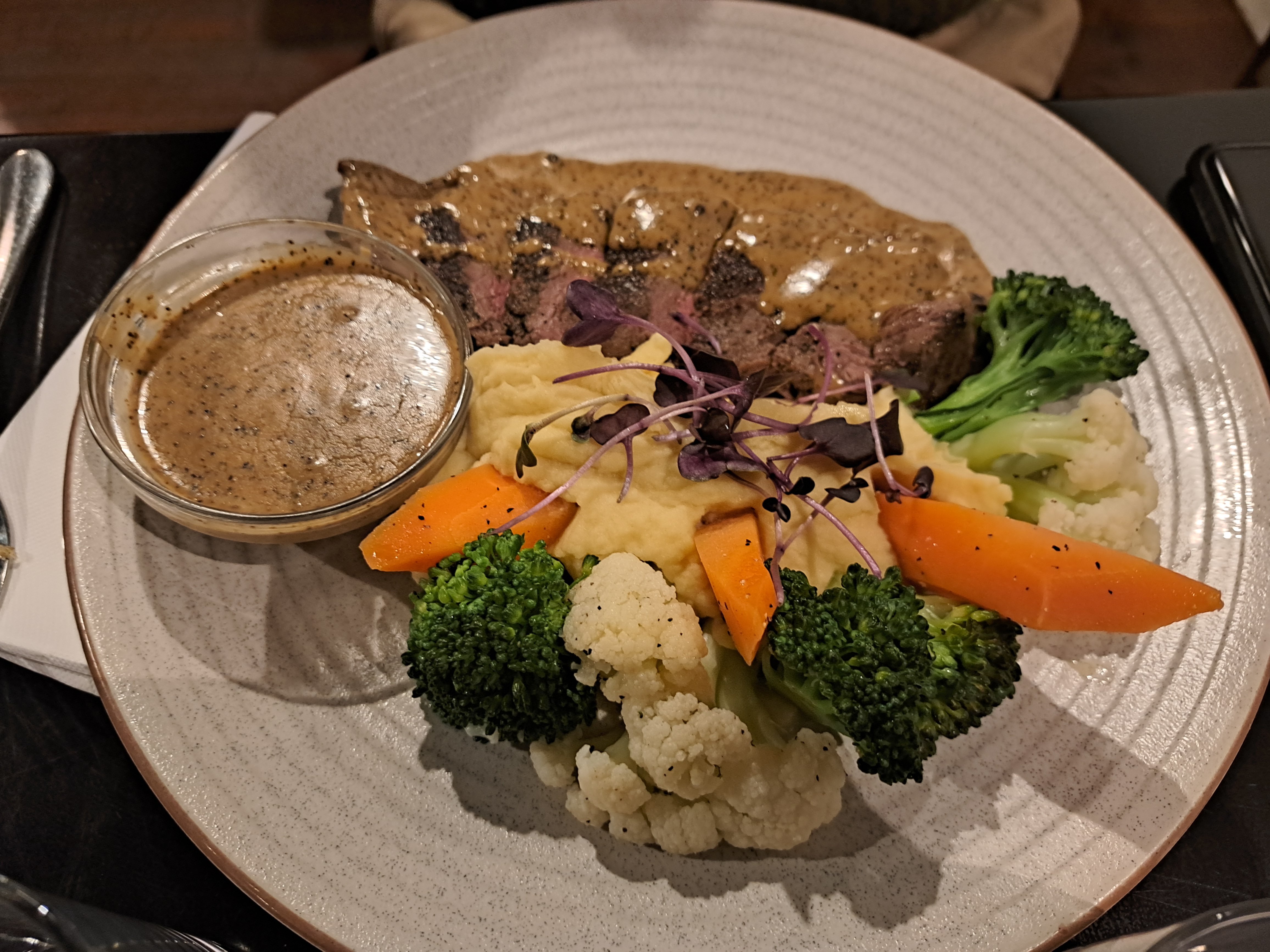 The latter meals hard to say value wise. Looks like enough to feed 3 people and similar to steak and chips from old-school pub. We would add a side portion off eggs, salad or veggies. My place its 250 gram steak, chips, salad or veggies deal for around $20 usd. With peppercorn sauce. Open steak sandwich is usually $15 usd give or take.