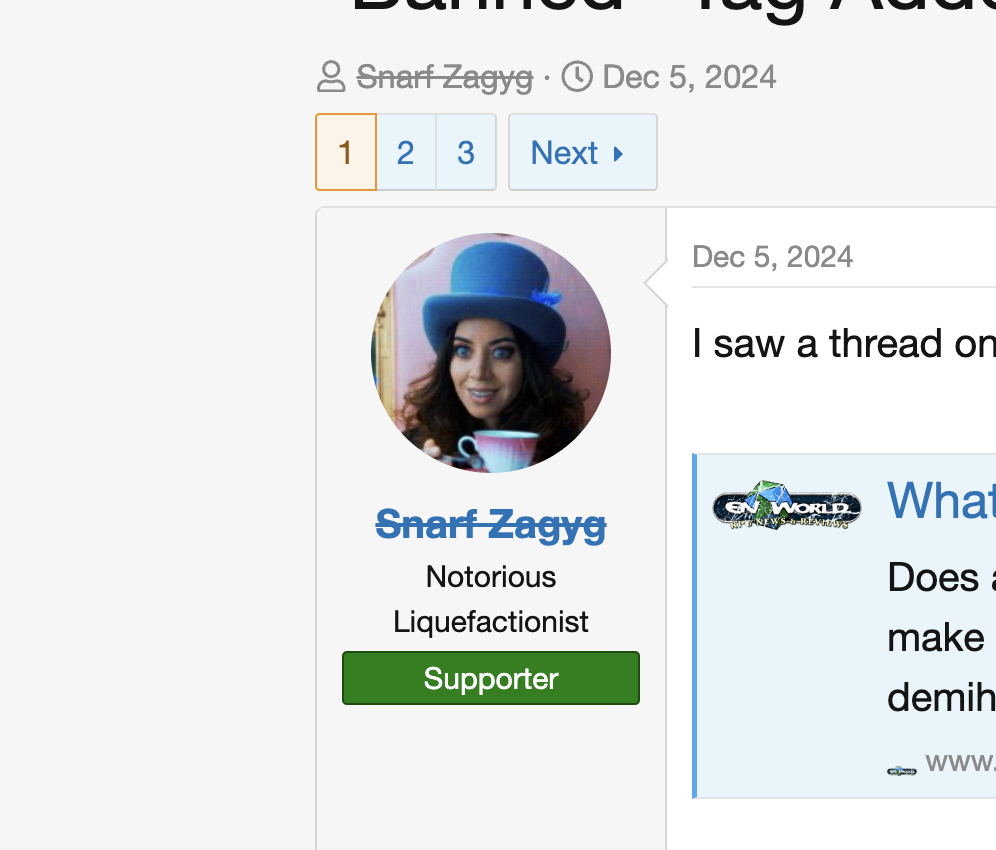 (Note he's not banned, he's just on a self-imposed vacation and asked us to ban him temporarily)