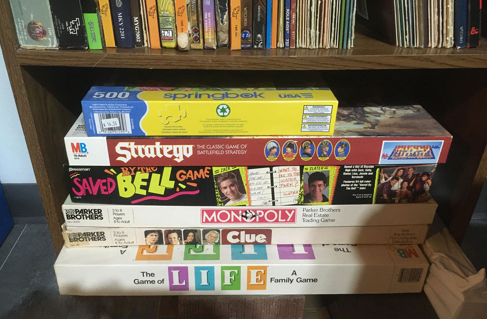 . . . Just some old board games of my wife's that don't fit in the game cabinet (mostly full of Euro games) on the wall opposite this one.