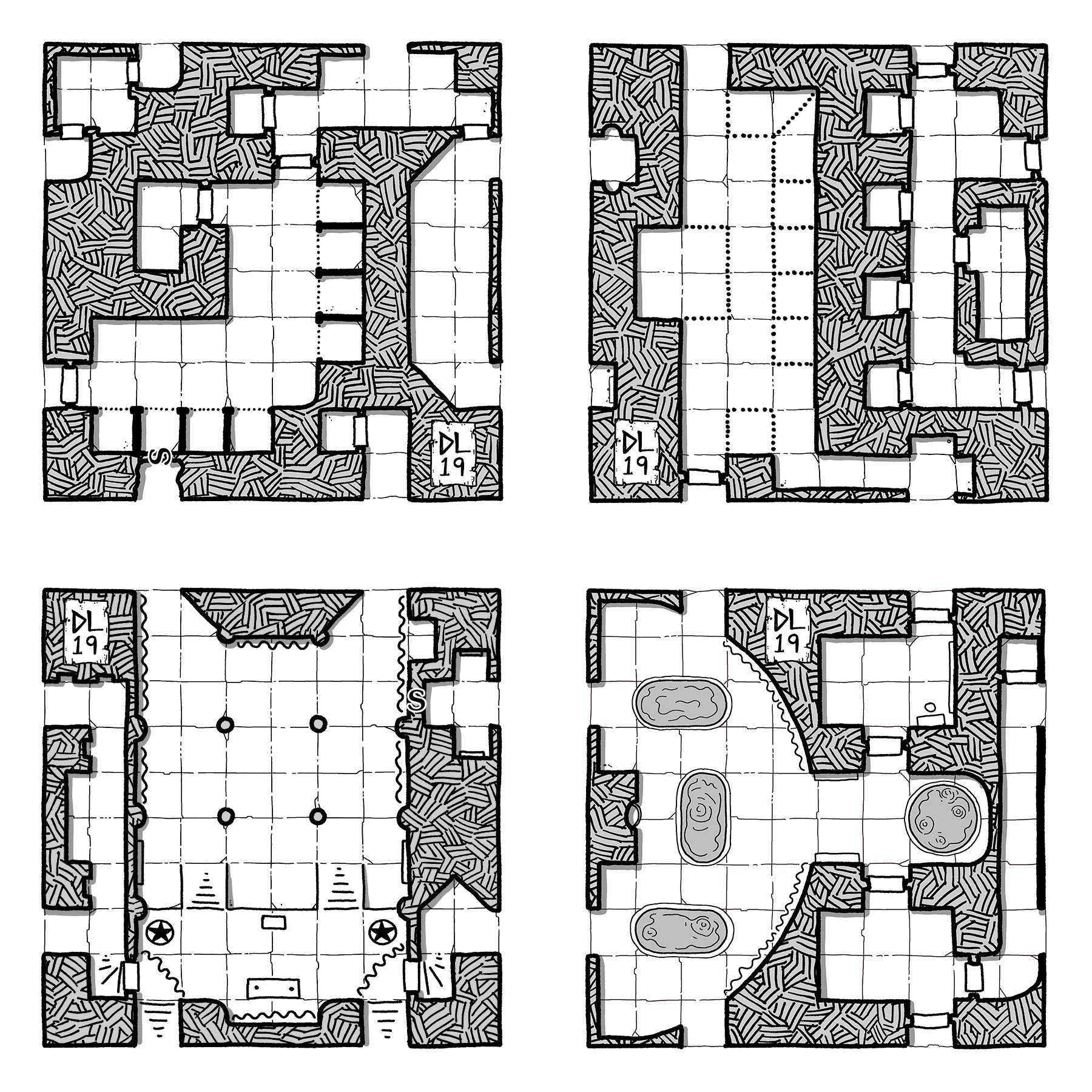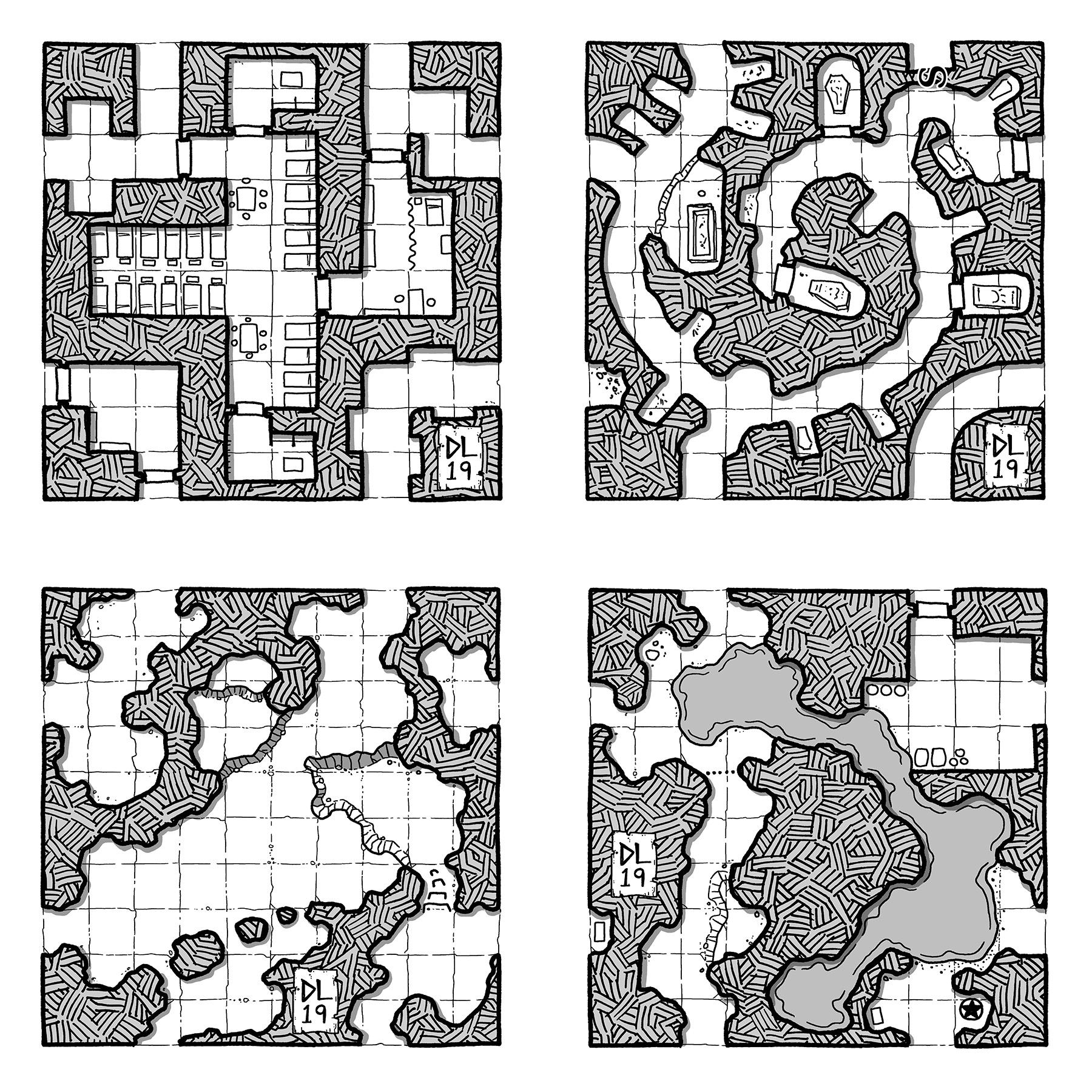 This map is actually a stylized closeup (at roughly 3 miles per hex) of one section of the classic Isle of Dread adventure from my campaign where I mash it up with elements of the Carcosa setting. Of the classic Isle of Dread map, this shows encounter location 8 (the Hippogriff nest on the island), location 5 (the caves of the rock baboons on the lower right of the map between the volcanoes) and it doesn’t quite extend north enough for the Roc nest at 16. It also includes a lot of smaller details that were added as I imported Carcosan weirdness – megalithic standing stones on the island, a few mountain caves and shore details to attract explorers’ attention, and such.