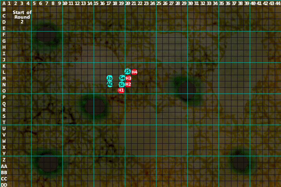 H1 1> steps to N18, 2> attacks Siobahn, 3> attacks Siobahn both hit (I forgot to give it the flanking bonus in the attack rolls below, so the 15 is a 17)