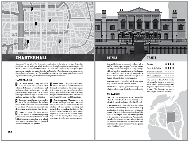 But I'm also writing an FitD game set in the 1980's, and looking at whether to limit it to a specific city—such as NYC—or to leave that vague, and say the GM/group can pick whatever large city is closest to them. It sounds like city specificity was not a pro or a con for your Galaxies in Peril campaign, but not everyone's interesting in putting that much work in, and want details that are ready to run. At the same time, I've heard from people who are a little intimidated by Duskwall's specificity, for example, and I definitely bounce off of Band of Blades because of how simultaneously specific and generic its setting is. I guess I'm not quite sure where the line is for FitD to run properly.
