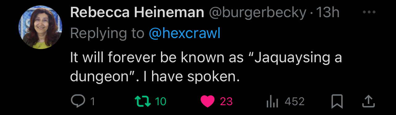 I don't have Justin's book, but a couple of the comments on the Xandering post point out that the only mention of Jennell is in the Acknowledgement section at the end of the book with the quote "Jennell Jaquays is the ultimate guru when it comes to xandering the dungeon.”